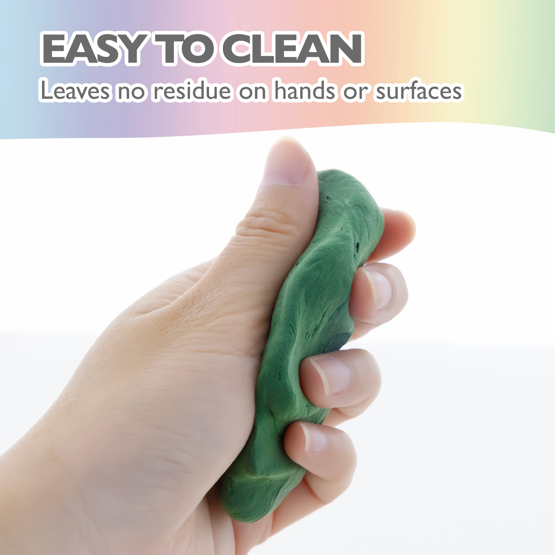 - EASY TO MOLD & CLEAN. This fine soft and light air clay dries solid. Leave no residue on your hands or surfaces so there's no need to worry about crumbs or a time-consuming clean up because this modeling clay is mess-free