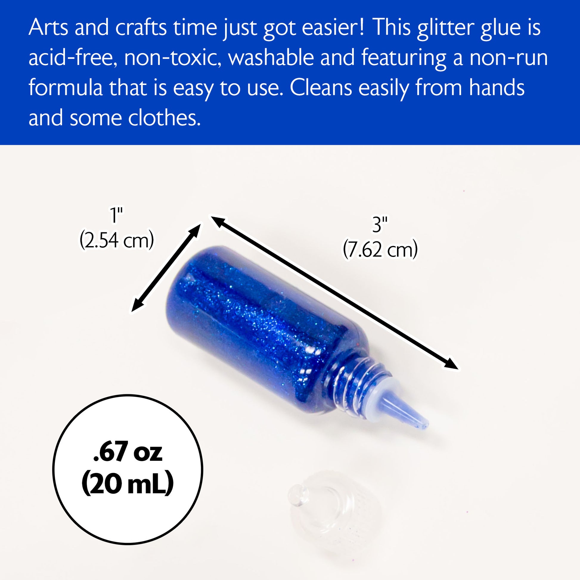 - SAFE FOR KID. Arts and crafts time just got easier! This glitter glue is acid-free, non-toxic, washable and featuring a non-run formula that is easy to use. Cleans easily from hands and some clothes.