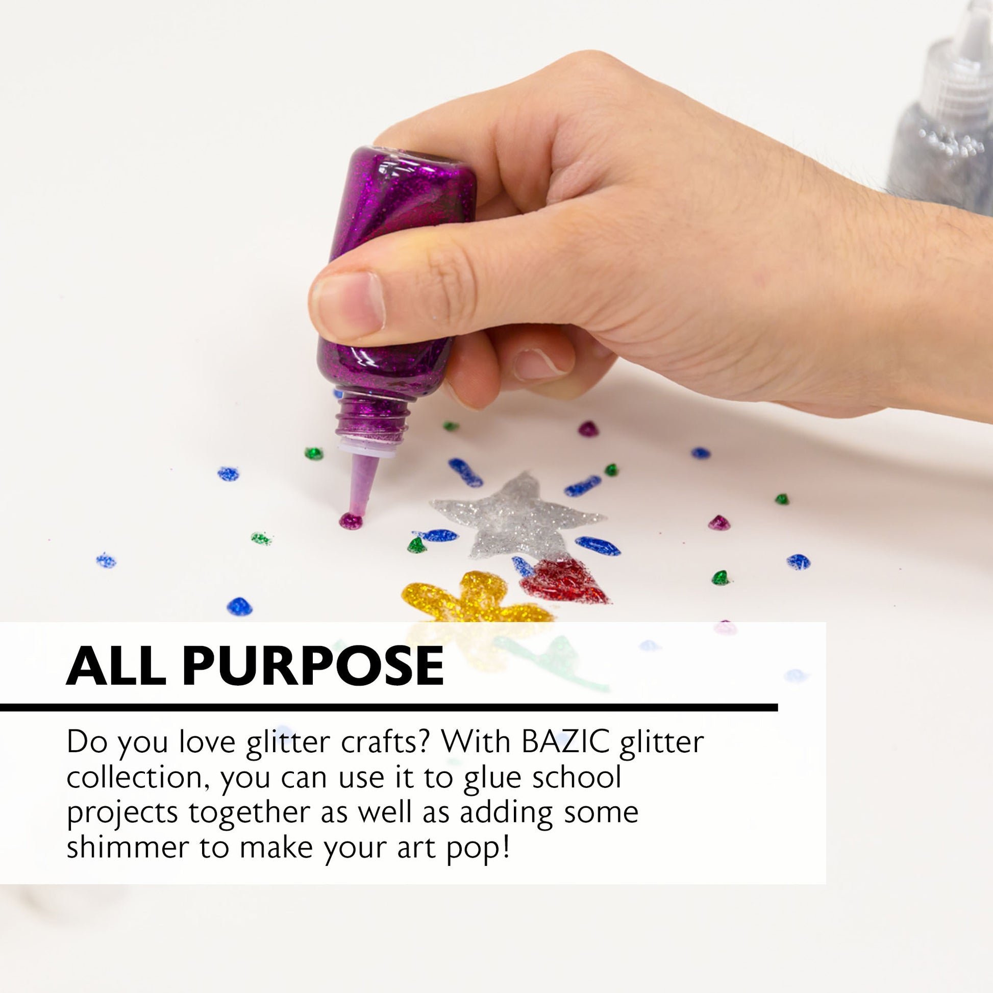 - ALL PURPOSE. Do you love glitter crafts? With BAZIC glitter collection, you can use it to glue school projects together as well as adding some shimmer to make your art pop!