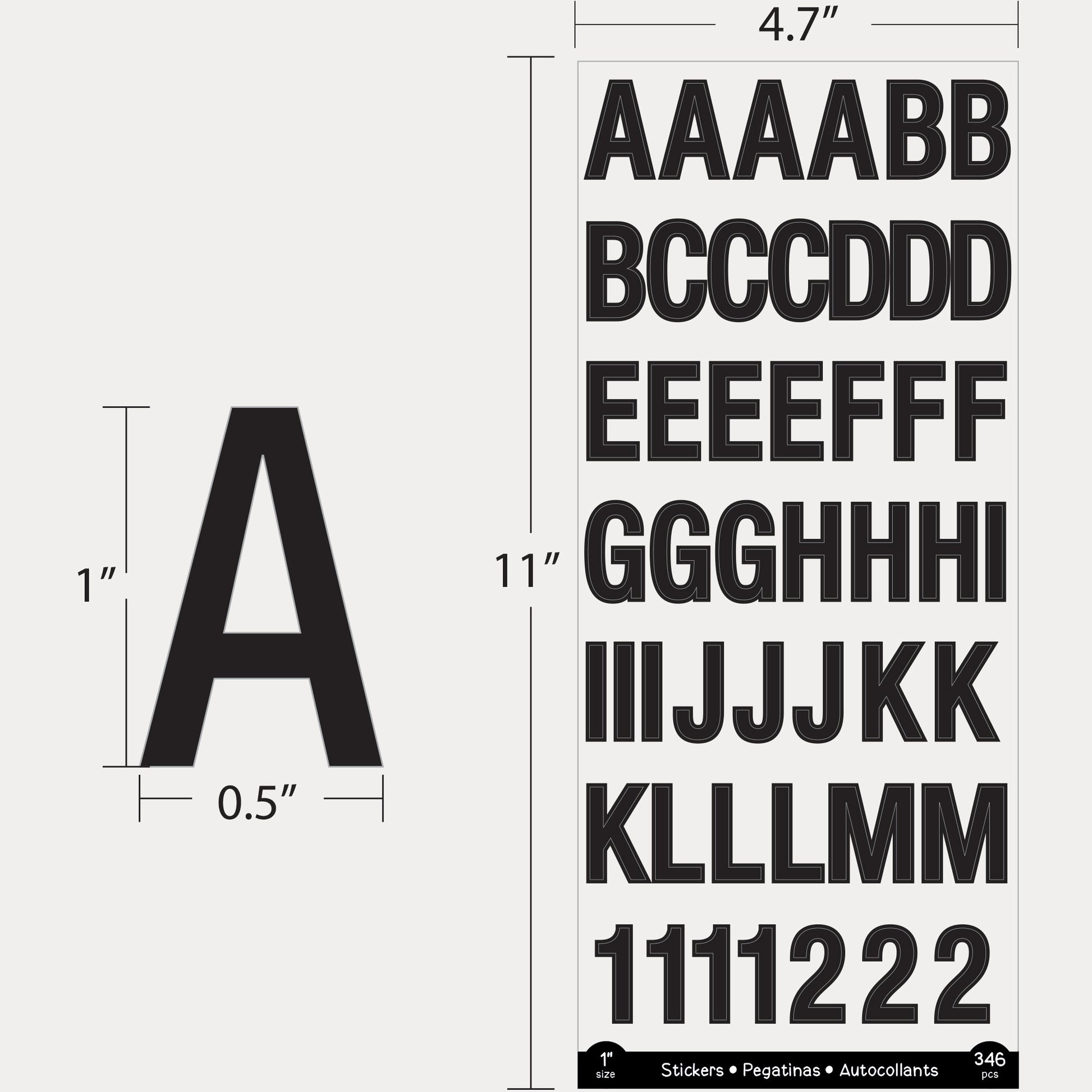 1" Black Color Alphabet & Numbers Stickers (346/Pack)