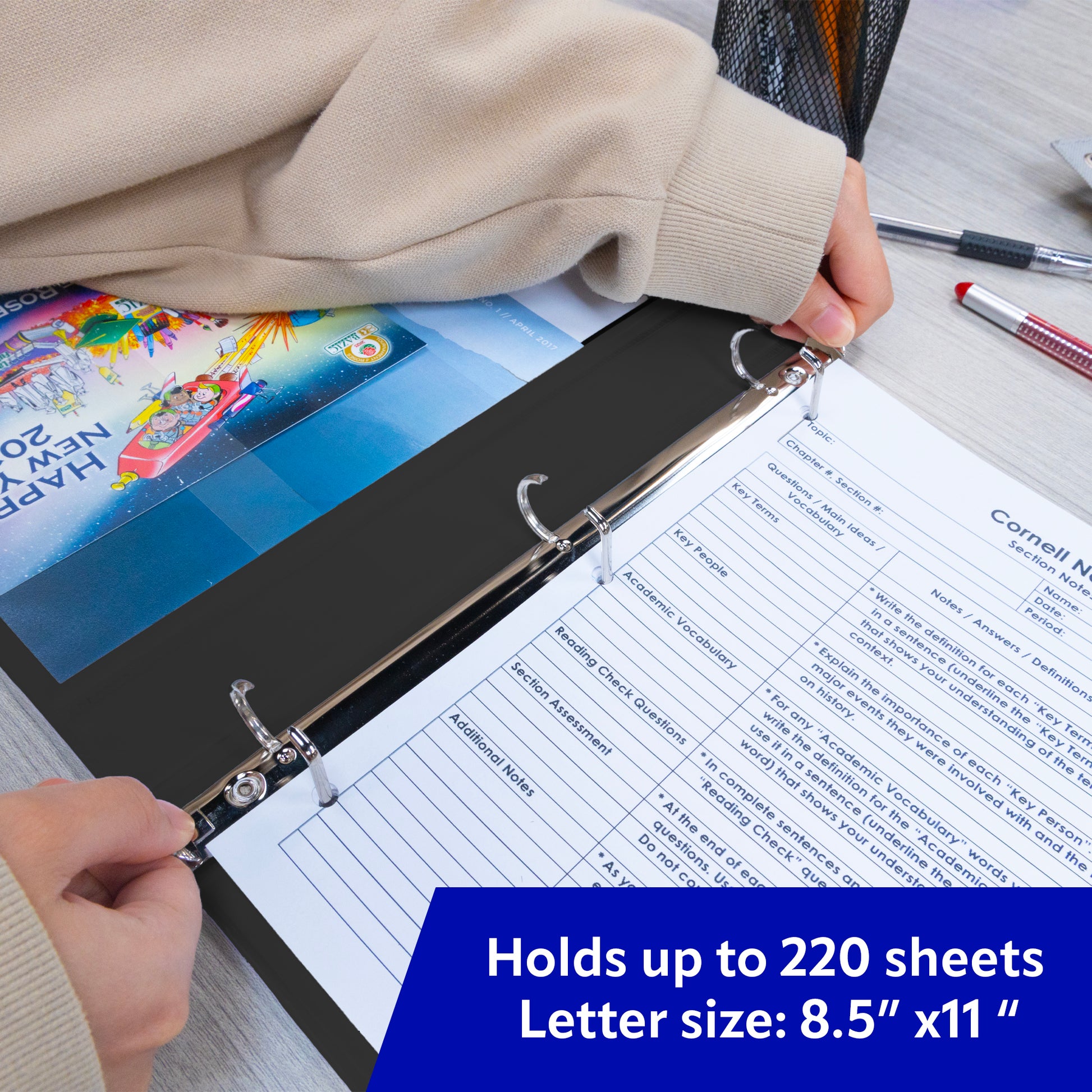 - ARCHIVAL SAFE. 1 Inch binder can hold up to 220 sheets / papers. The slant D-rings offer larger capacity and open and close easily for adding and flipping pages