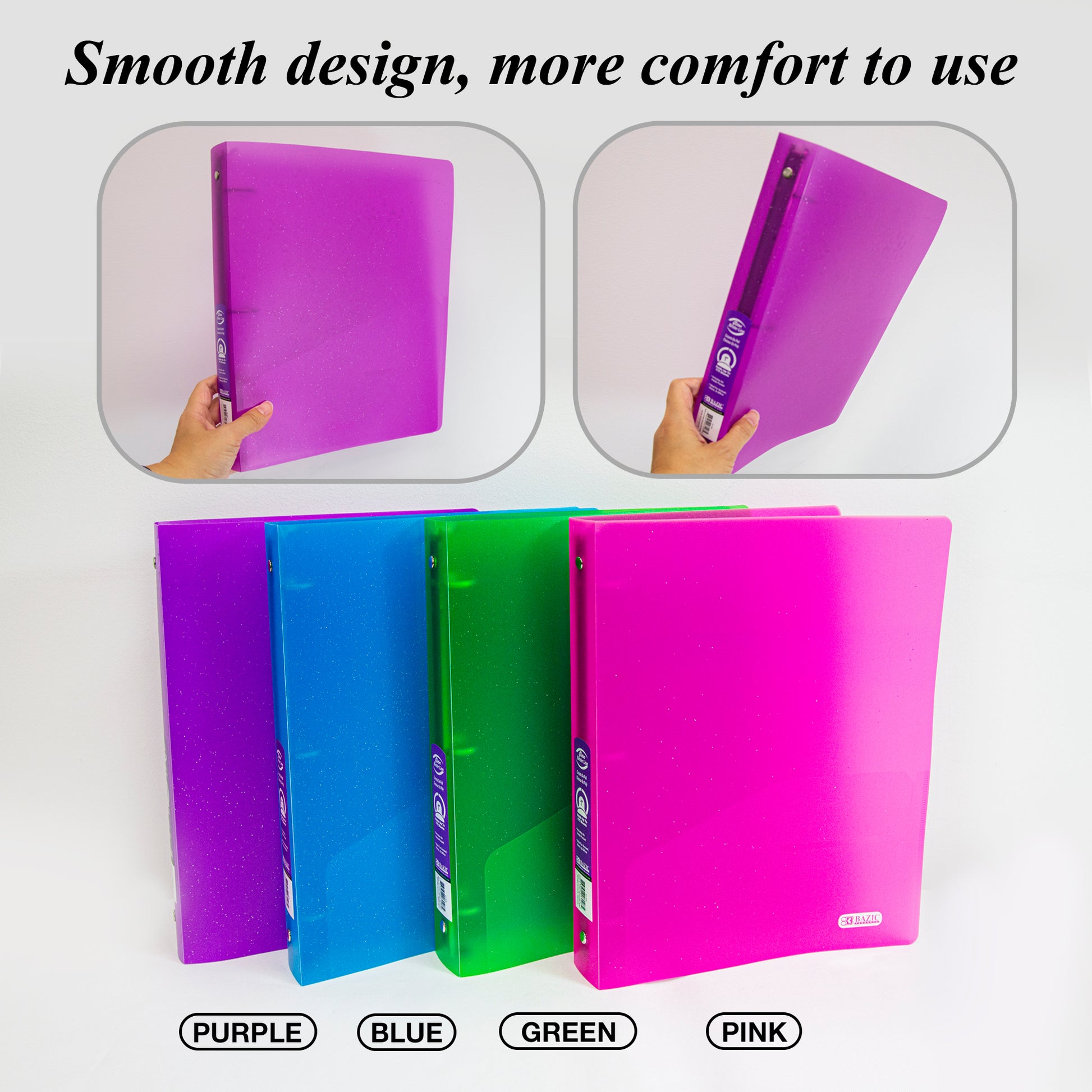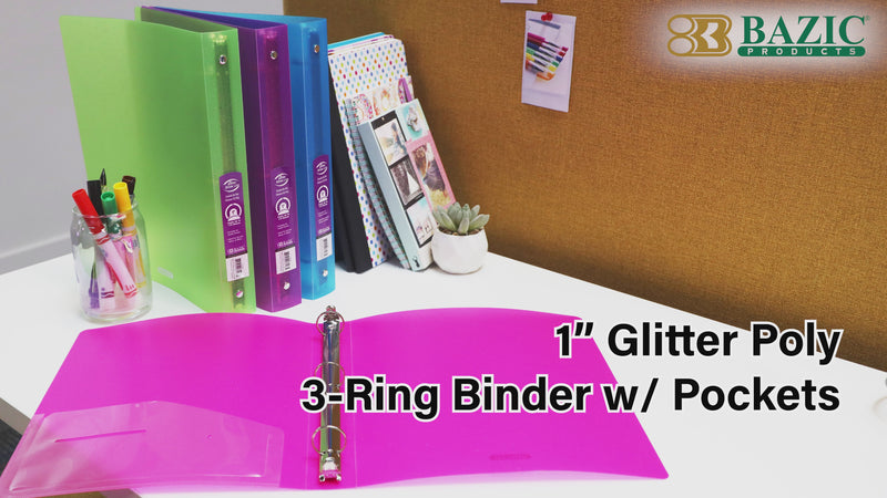 1" Glitter Poly 3-Ring Binder w/ Pocket