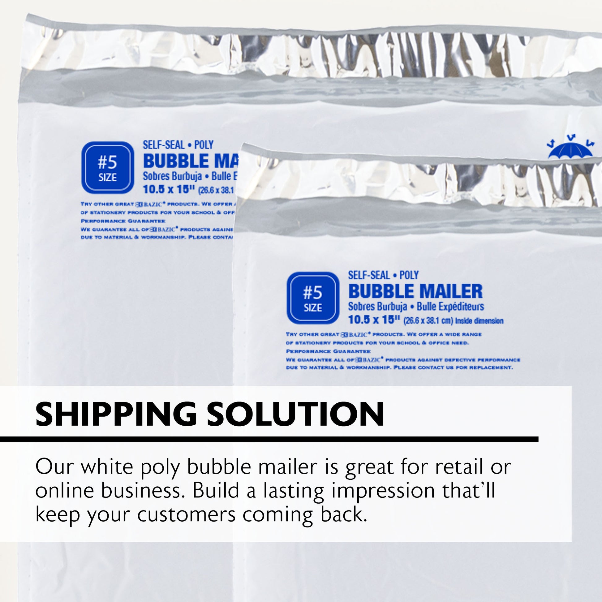 - SHIPPING SOLUTION. Our white poly bubble mailer is great for retail or online business. Build a lasting impression that'll keep your customers coming back.