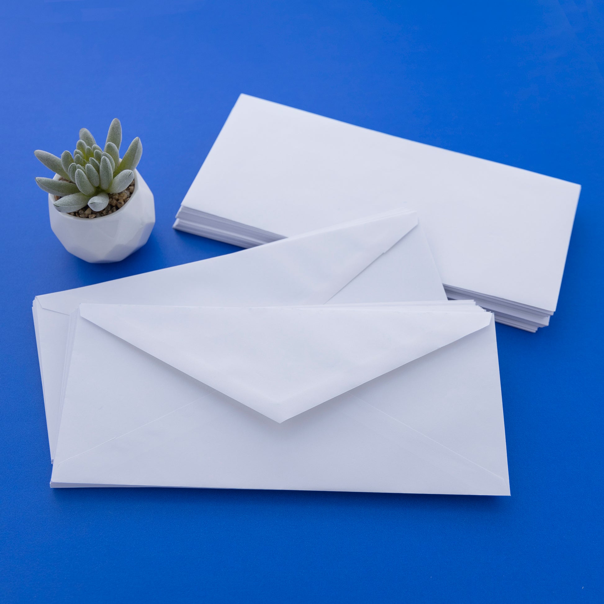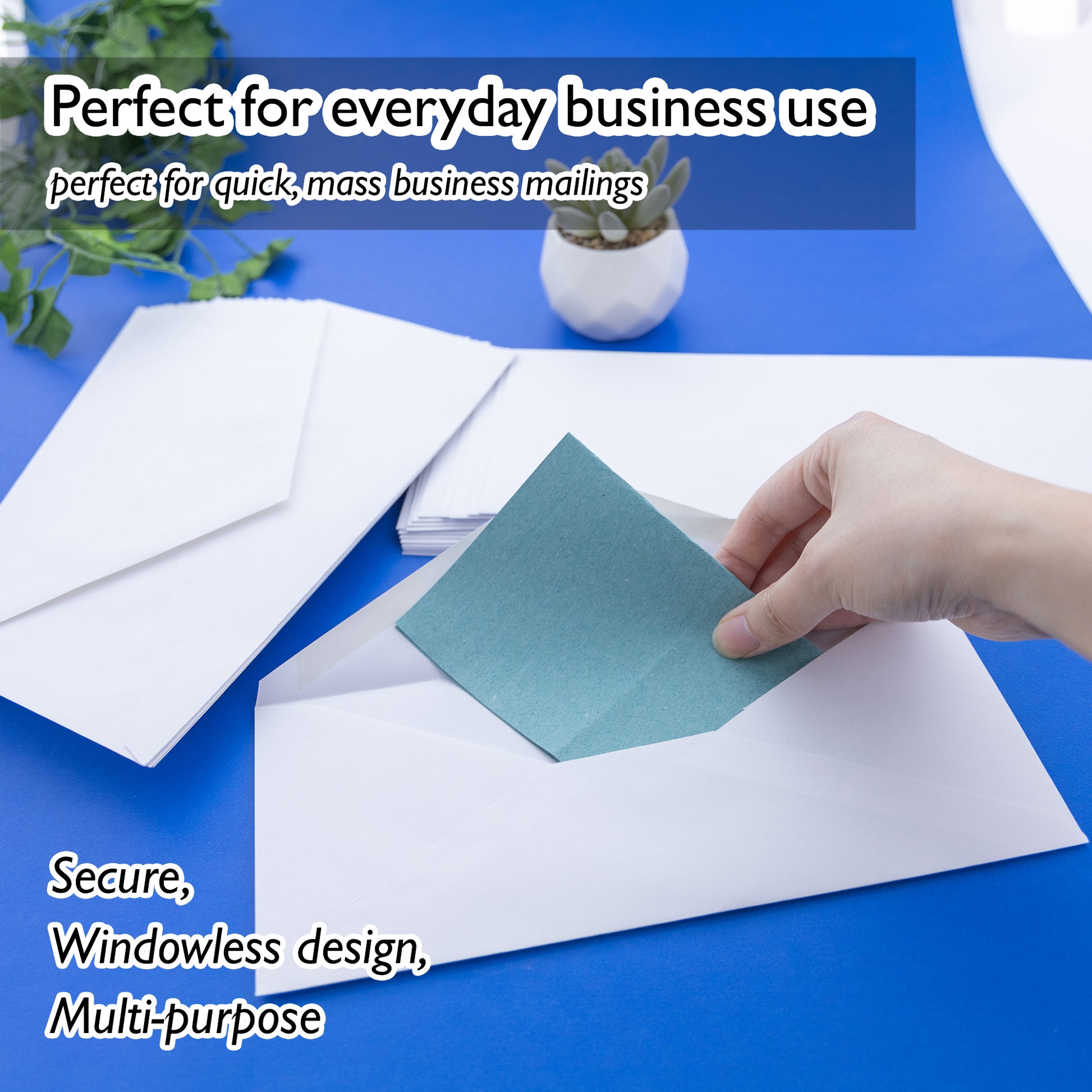 - #10 WHITE ENVELOPES. These 4 1/8" x 9 1/2" inch envelopes with gummed closure offer a crisp, clean look to help you maintain a professional appearance. Great for storing or shipping documents.