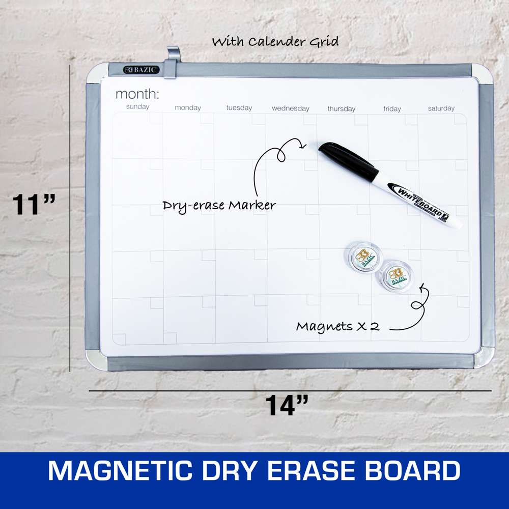 11" X 14" CLASSIQUE Magnetic Dry Erase Calendar Board w/ Marker & 2 Magnets