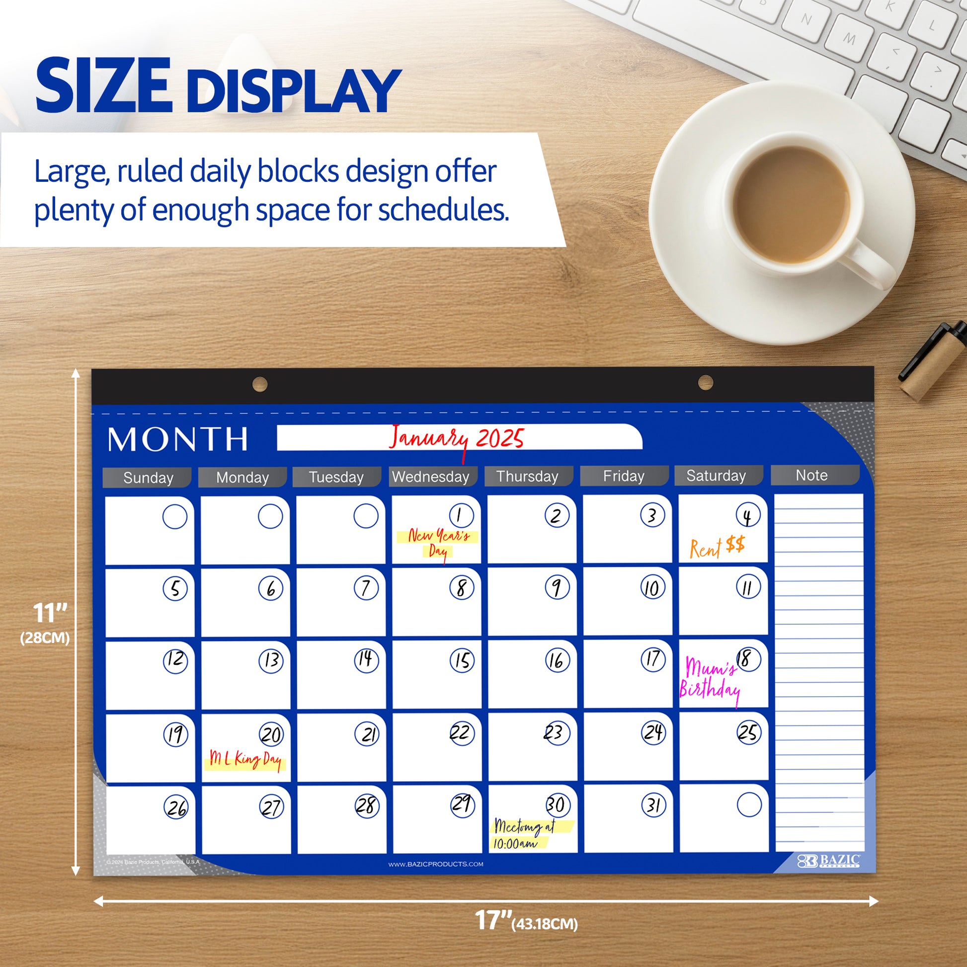- CUSTOMIZABLE. Measure 17" x 11". Un-dated calendars allow custom scheduling monthly & daily. Desk pad has 12 pages for you to customize from January-December. Sidebar note column for extra message.