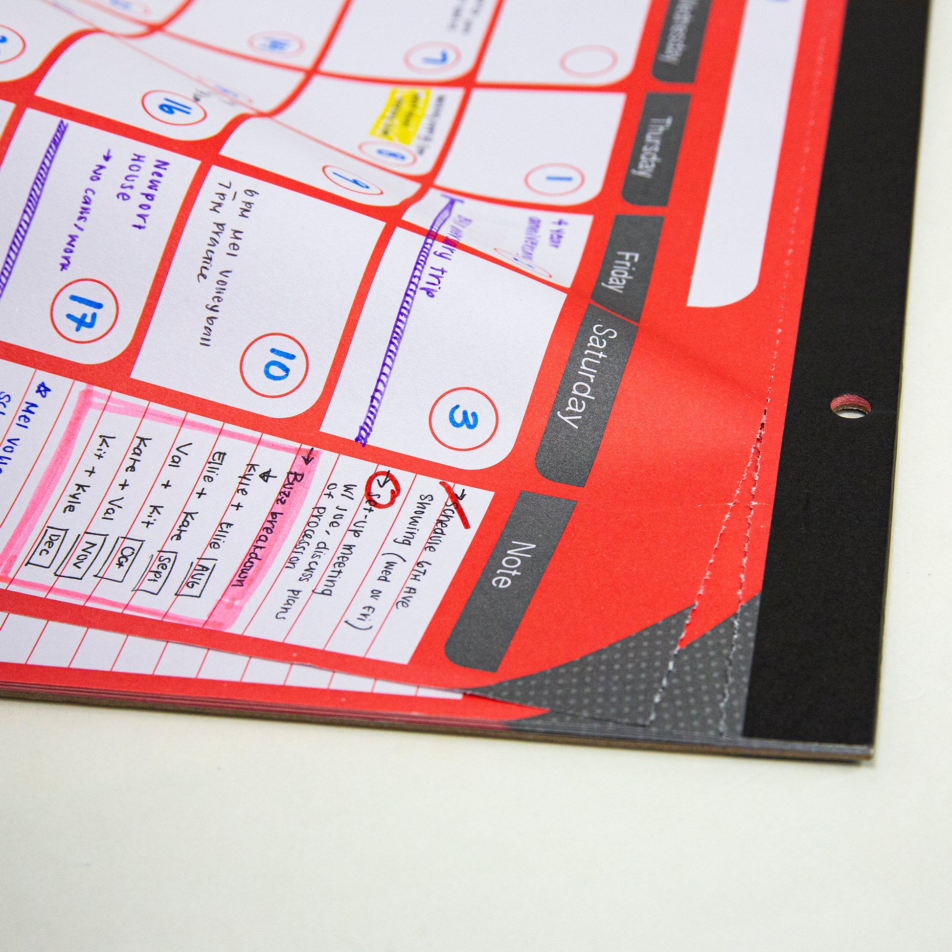 - BE ORGANIZED. Large, ruled daily blocks design offer plenty of enough space for schedules. Each block is 2" x 1.5". Pre-punch 2 hole, sturdy quality makes it hang on the wall, refrigerator, bulletin
