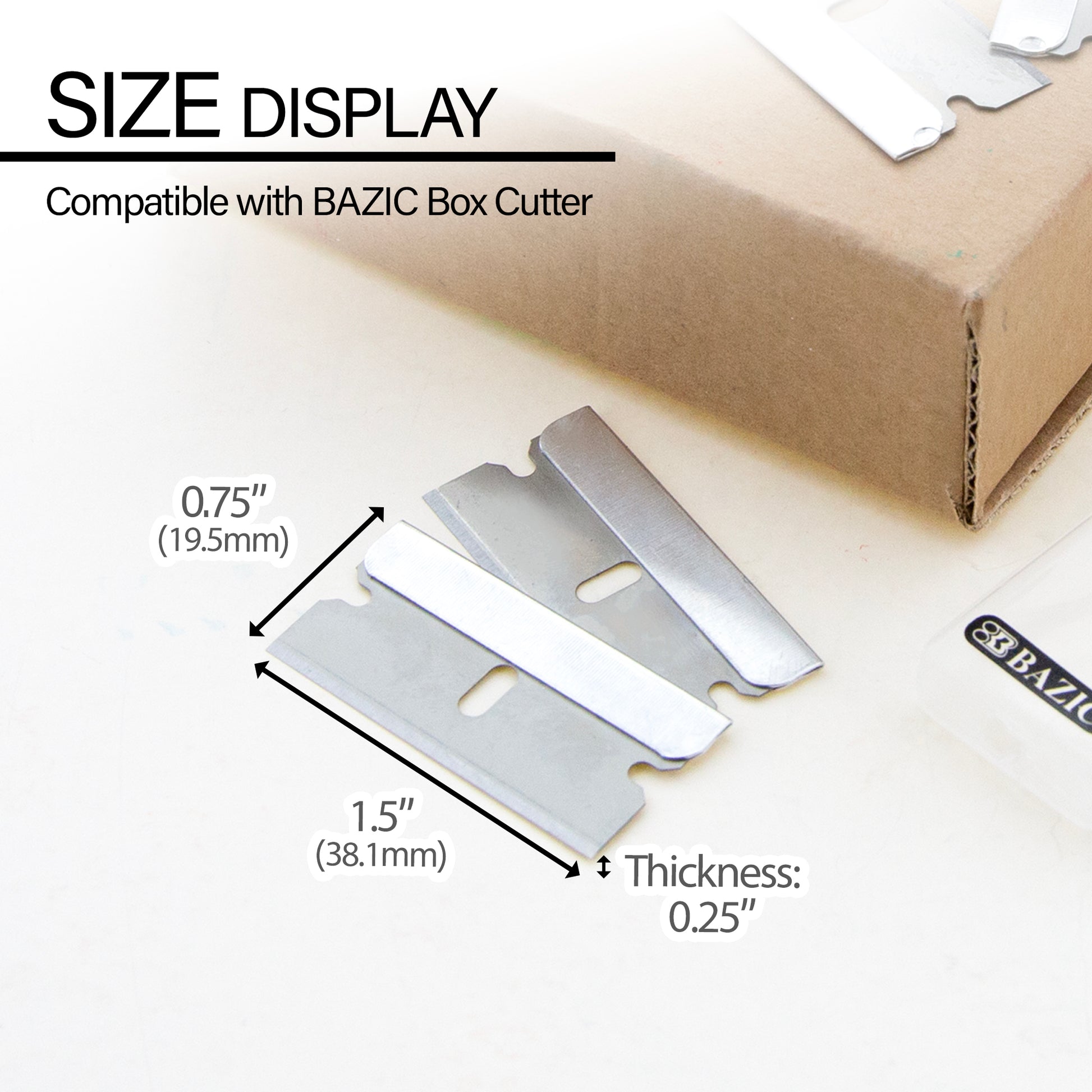 - RELIABLE & DURABLE. Made of stainless steel backed high carbon steel blade. Each measure: 1.5 x 0.75 inches. Thickness: 0.25 mm. Cut sharp, corrosion & rust resistance.