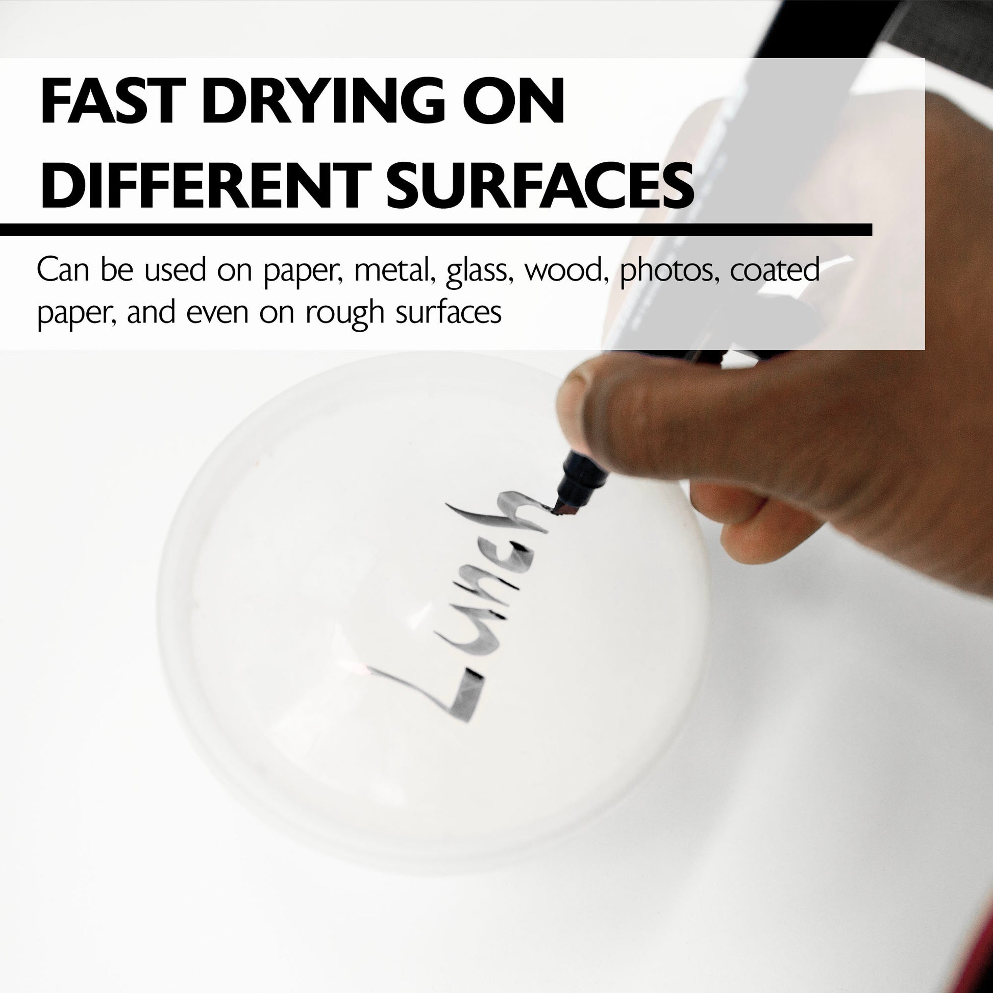 - FAST DRYING ON DIFFERENT SURFACE. Can be used on paper, metal, glass, wood, photos, coated paper, and even on rough surfaces