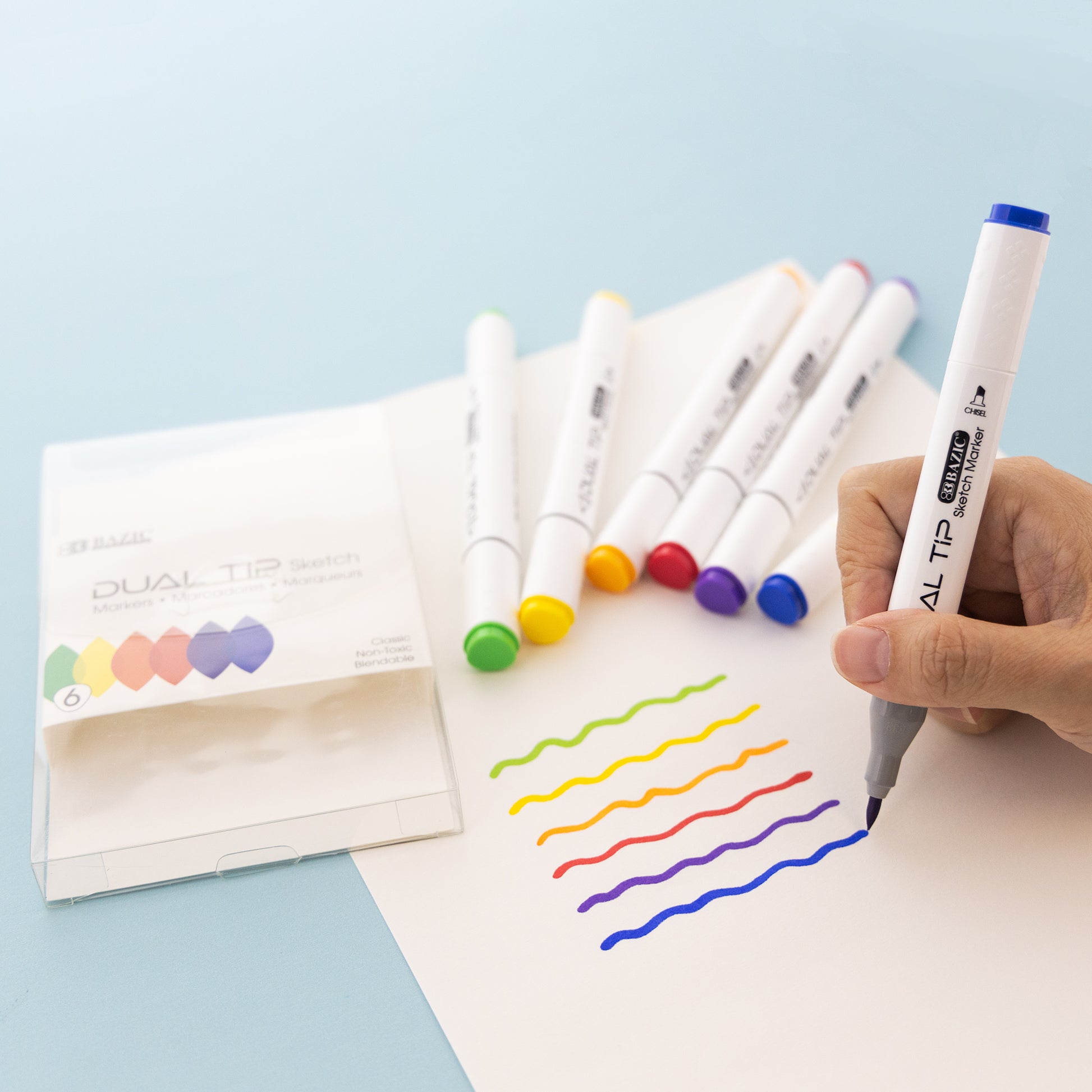 6 Primary Colors Dual Tip Sketch Markers