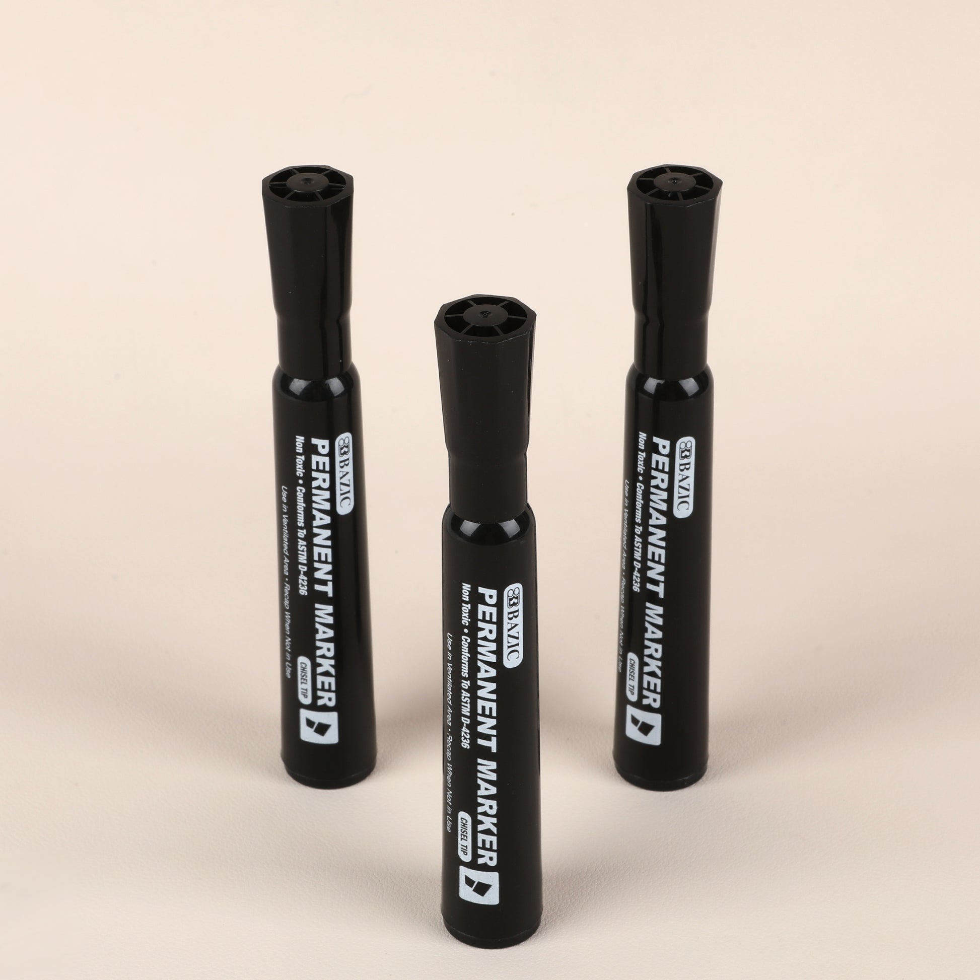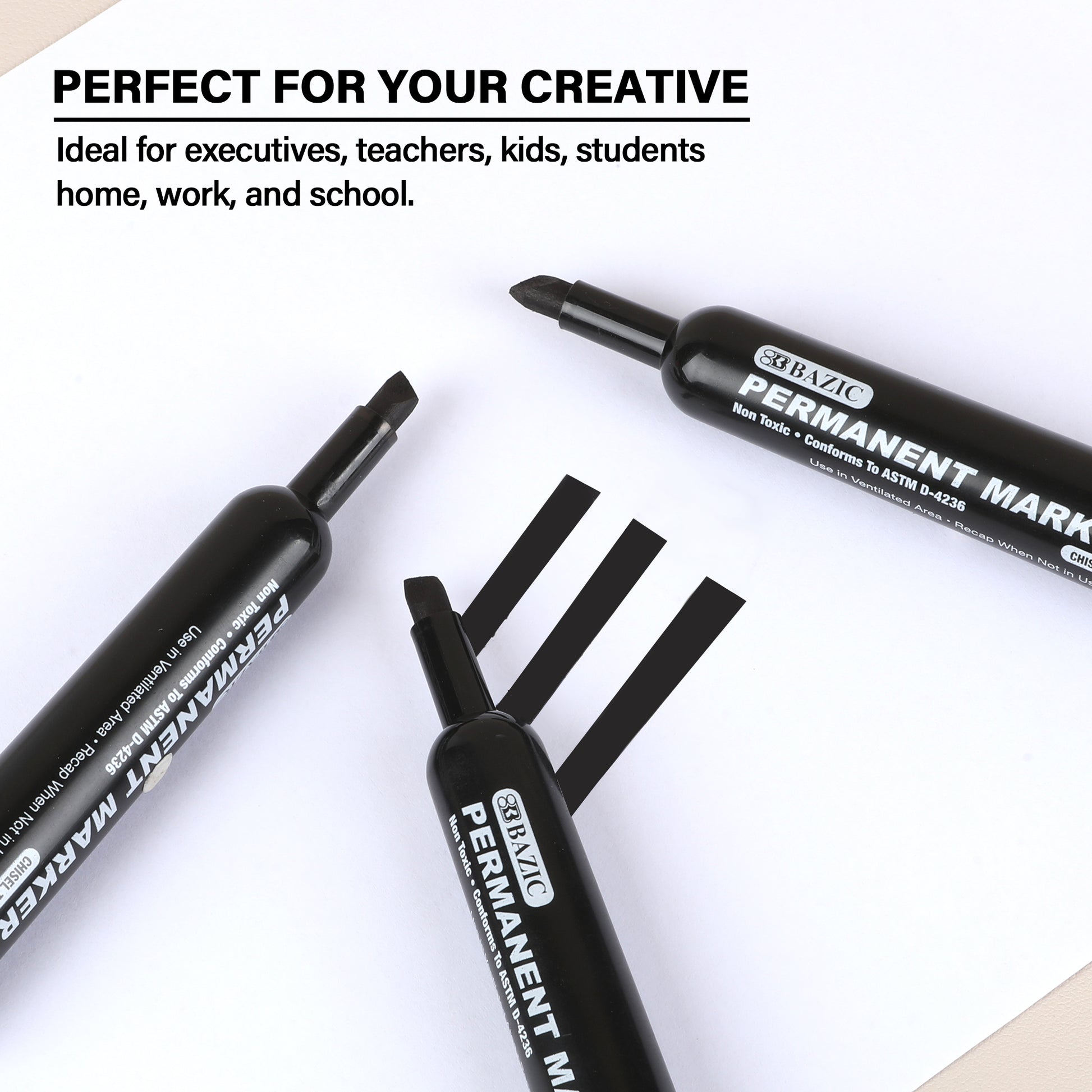 Black Chisel Tip Desk Style Permanent Markers (3/Pack)