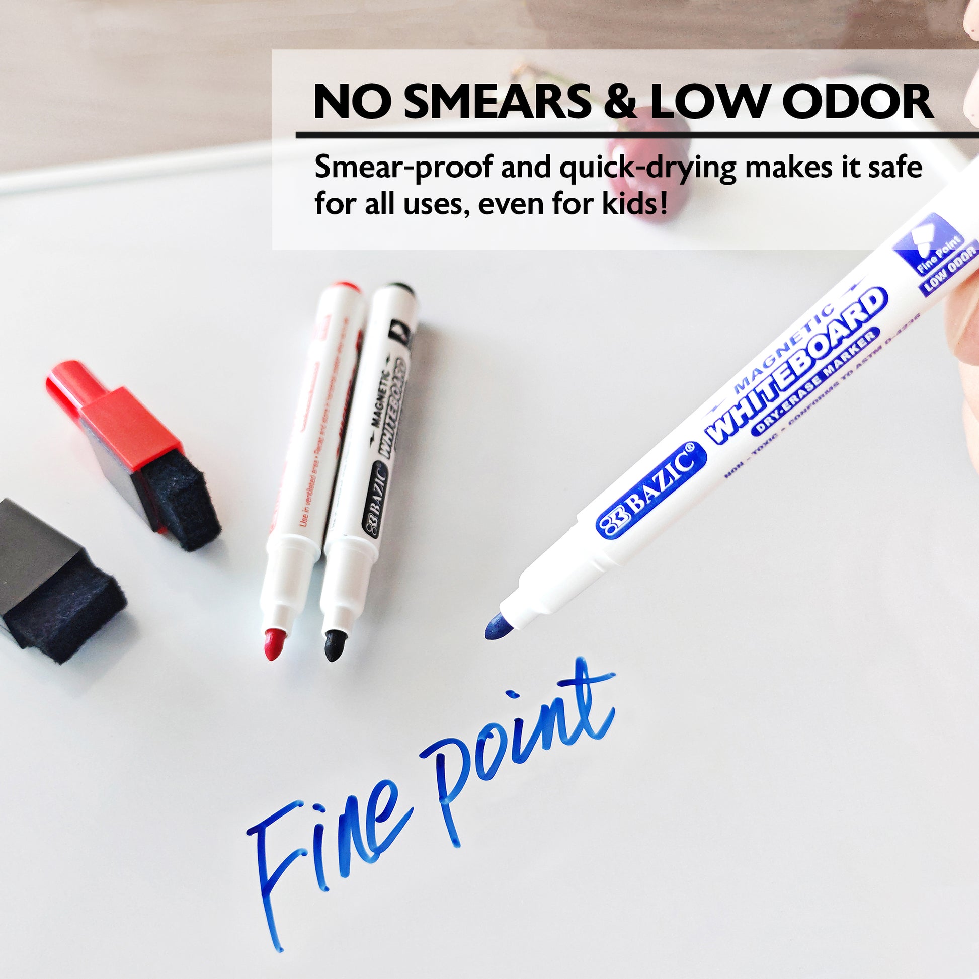 - NO SMEARS & LOW ODOR. Ink pigment is made with easy-wipe formula that'll leave your whiteboard looking as good as new. Smear-proof and quick-drying makes it safe for all uses!