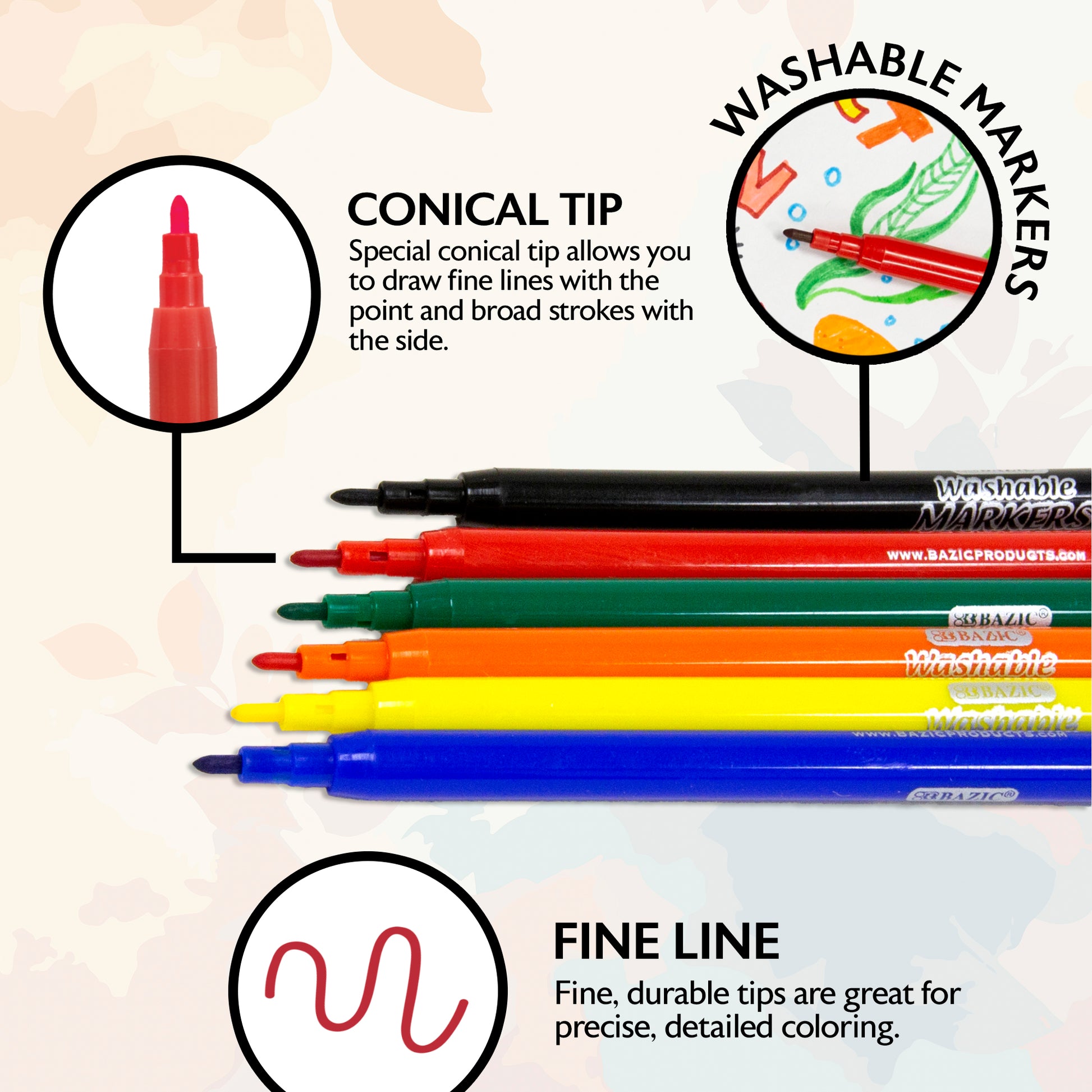 - FINE LINE WASHABLE MARKERS. Fine, durable tips are great for precise, detailed coloring. Fine line tips ensure precision while coloring in small areas of intricate designs.