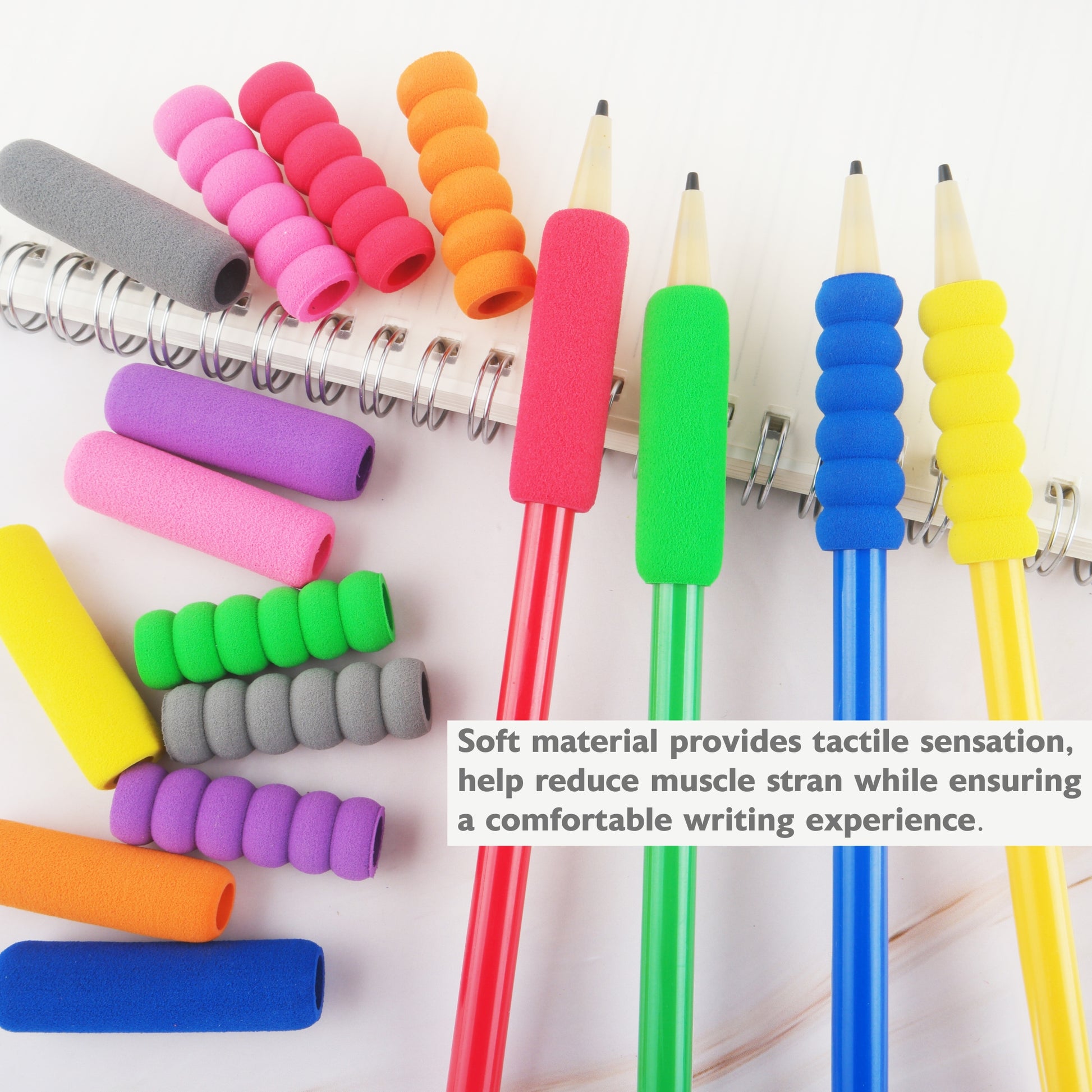 - FOAM GRIPS. There is no need to worry about losing or breaking your pencil grip, enough quantity and multiple colors for you to choose and use for quite a long time, also suitable for classroom spare.