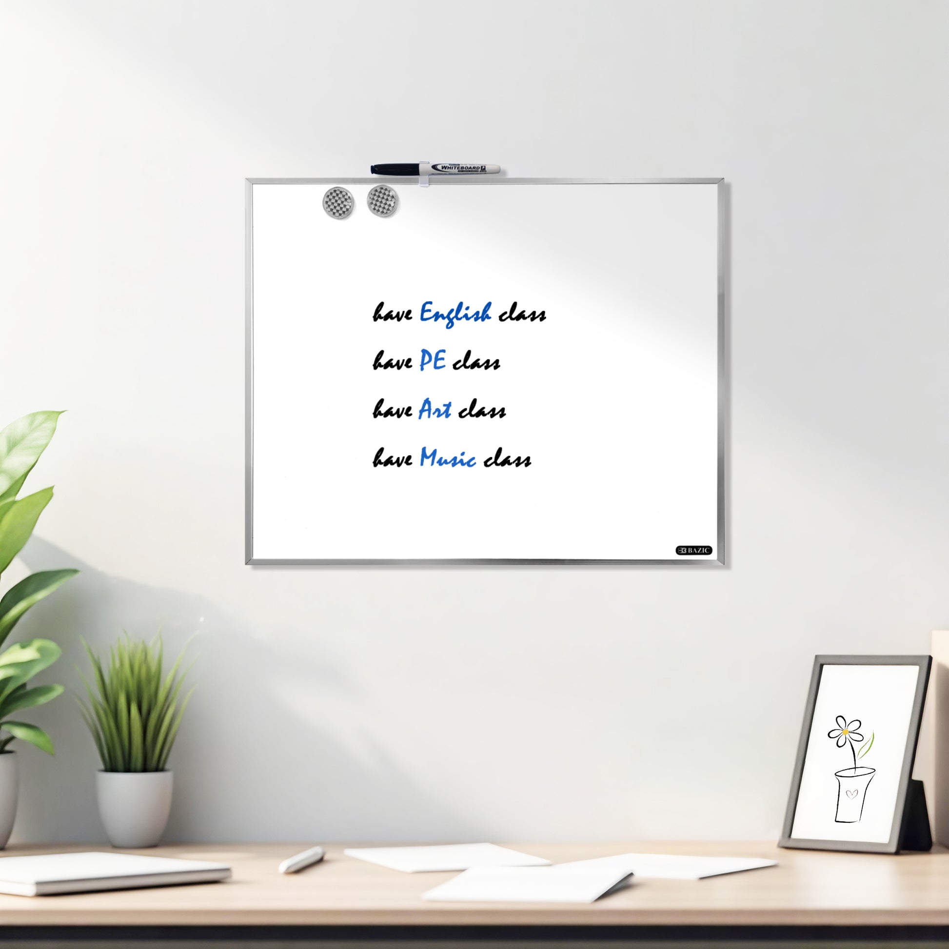 - DURABLE. Quality and sturdy aluminum frame for long lasting use. Premium surface that is scratch resistant. Ideal for planning, chores, to do list tasks, home studies, organization.