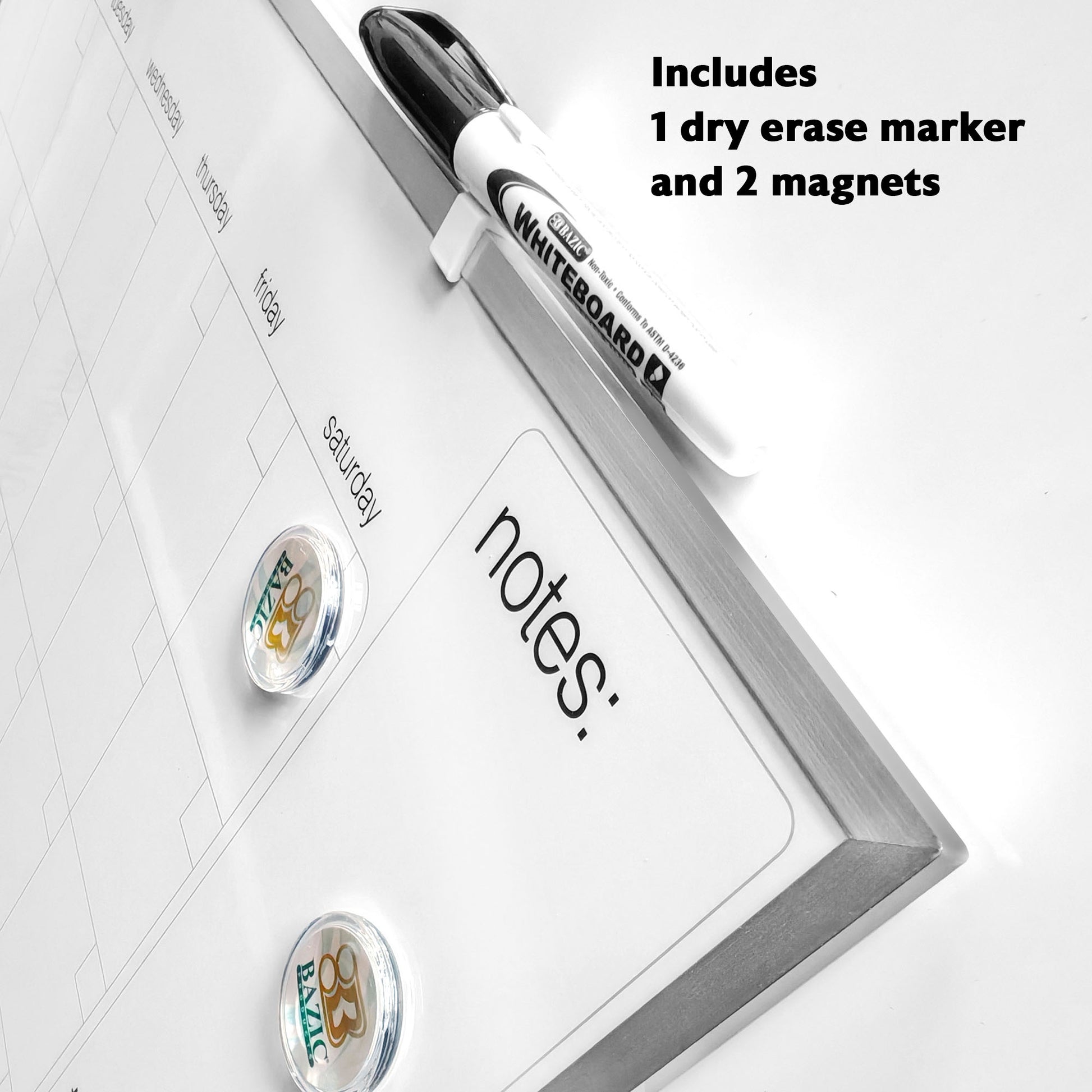 - MAGNETIC CALENDARS PAD. Include dry erase marker*1, magnet*1, screw*4. Bulletin board is great for post notes, messages, pictures, memos, calendars, menus, reminders, and more!