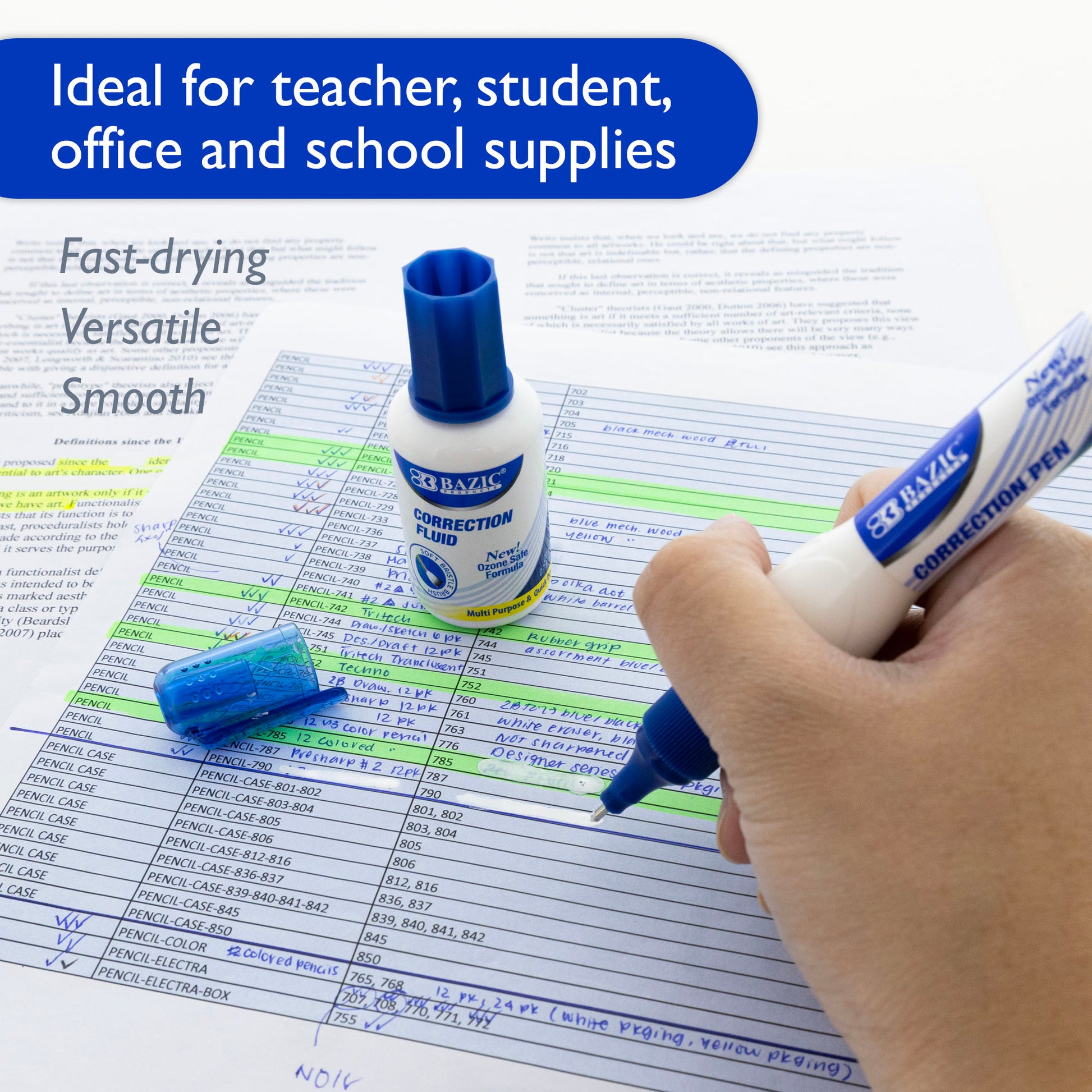 - NO MORE MISTAKES! We've got you covered with our assortment of correction fluids, tape and pen. No need to worry about re-doing your work due to a minor mistake.