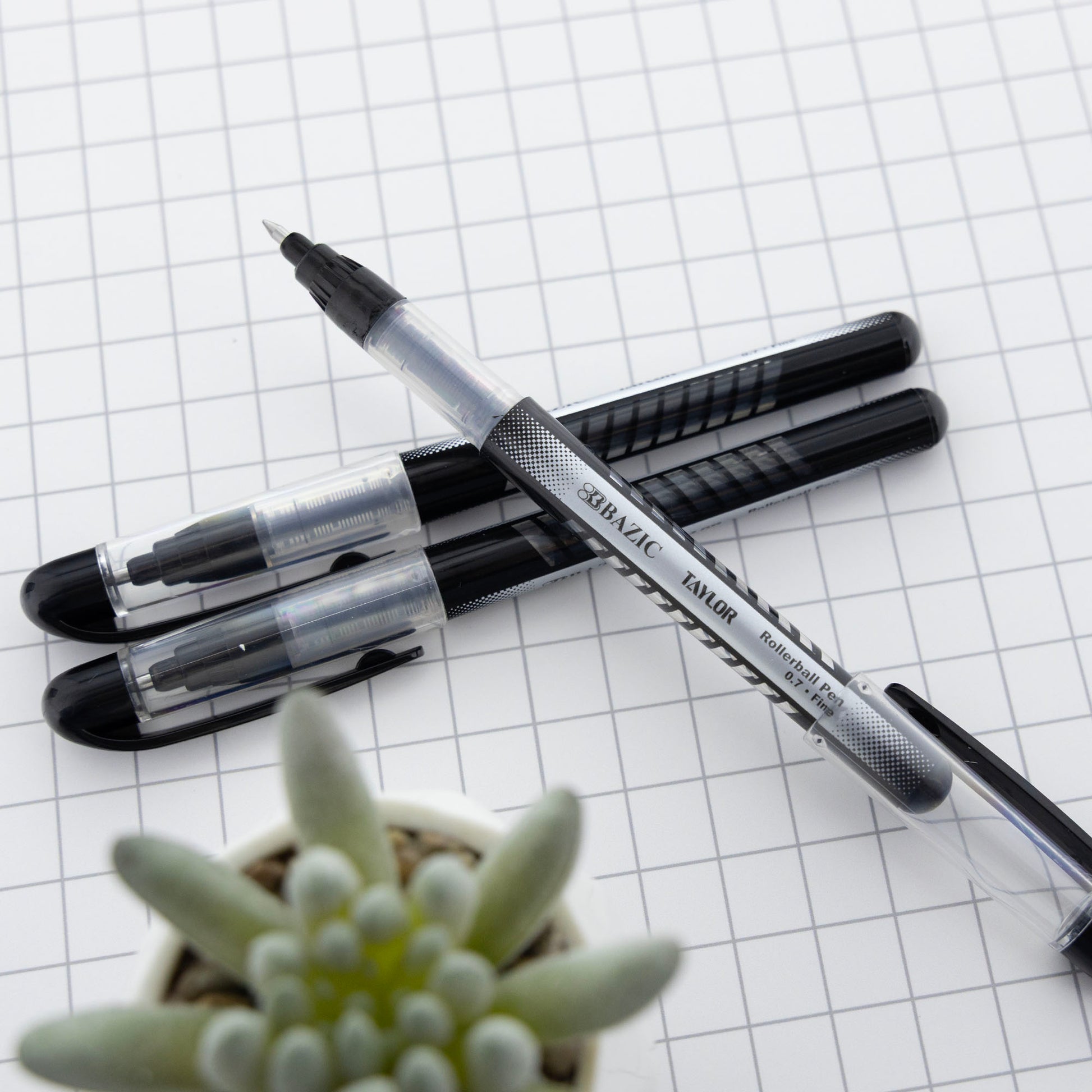 - TAYLOR BLACK COLOR ROLLERBALL PEN. Each pack includes 3-Black Rollerball Pens. These fine point pens flow free and write more smoothly than traditional pens. A perfect choice for your everyday use.