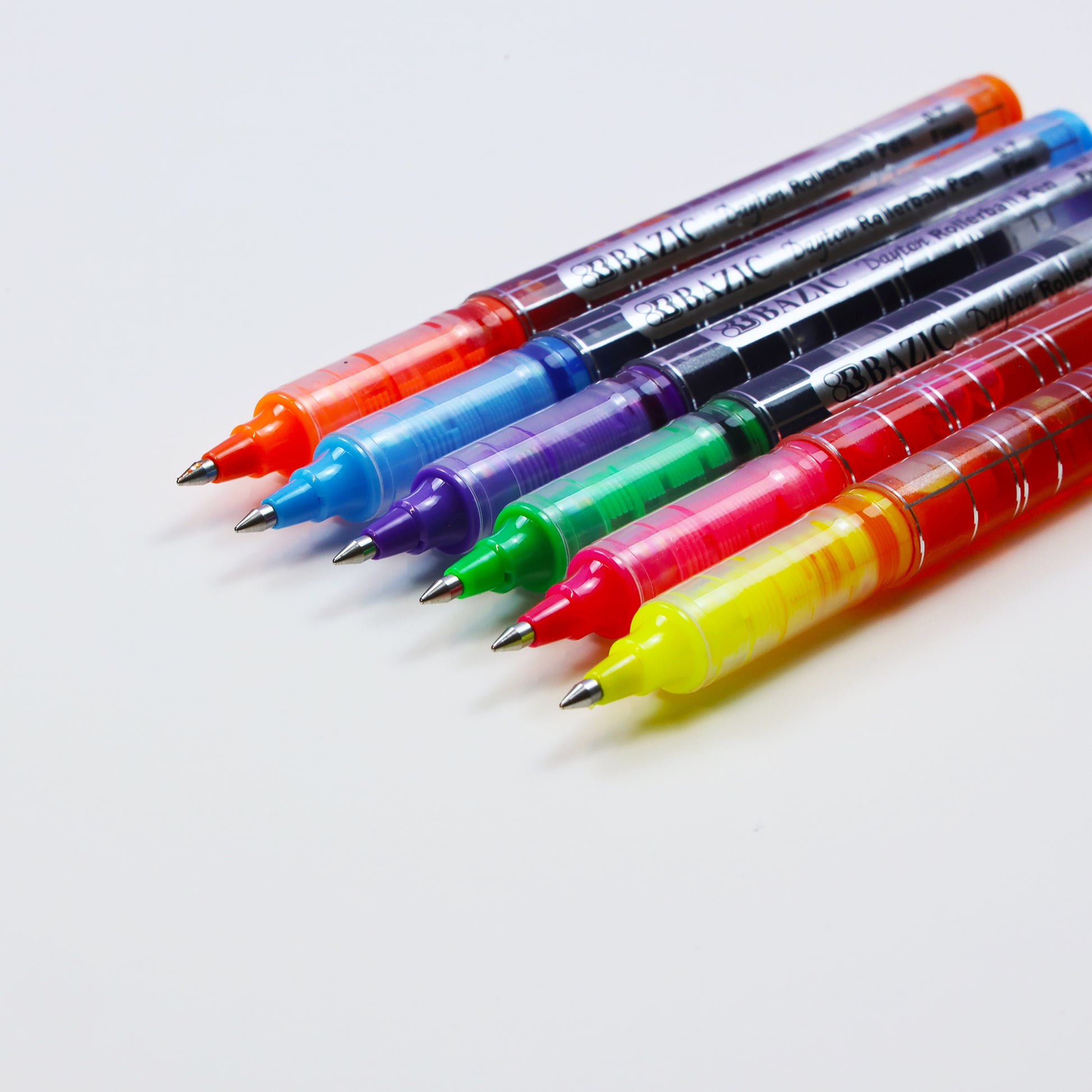 - 6 COLOR DAYTON ROLLERBALL PEN. Each pack includes 6-Assorted Rollerball Pens; Actual Colors May Vary! These fine point pens flow free and write more smoothly than traditional pens.