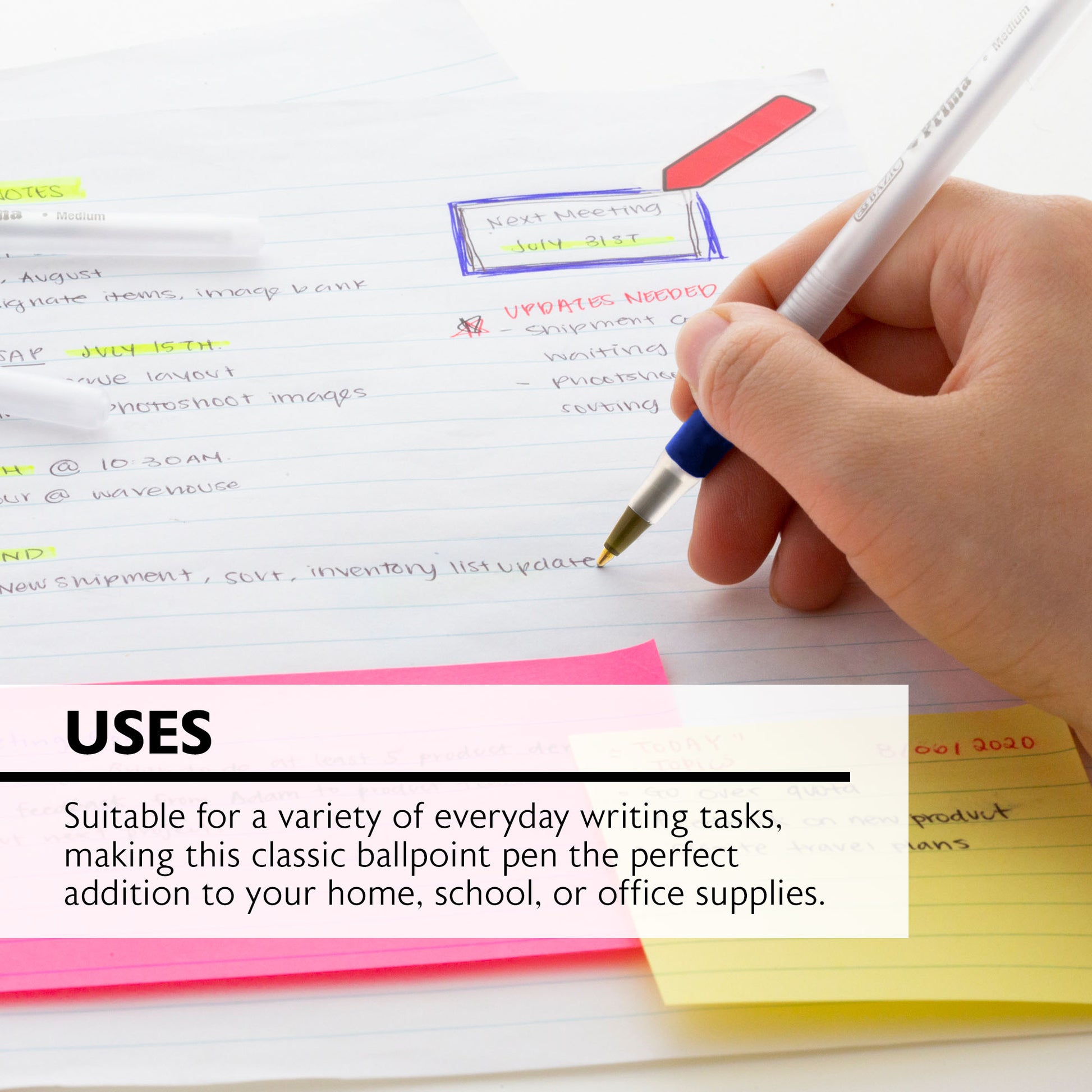- USES. Suitable for a variety of everyday writing tasks, making this classic ballpoint pen the perfect addition to your home, school, or office supplies.