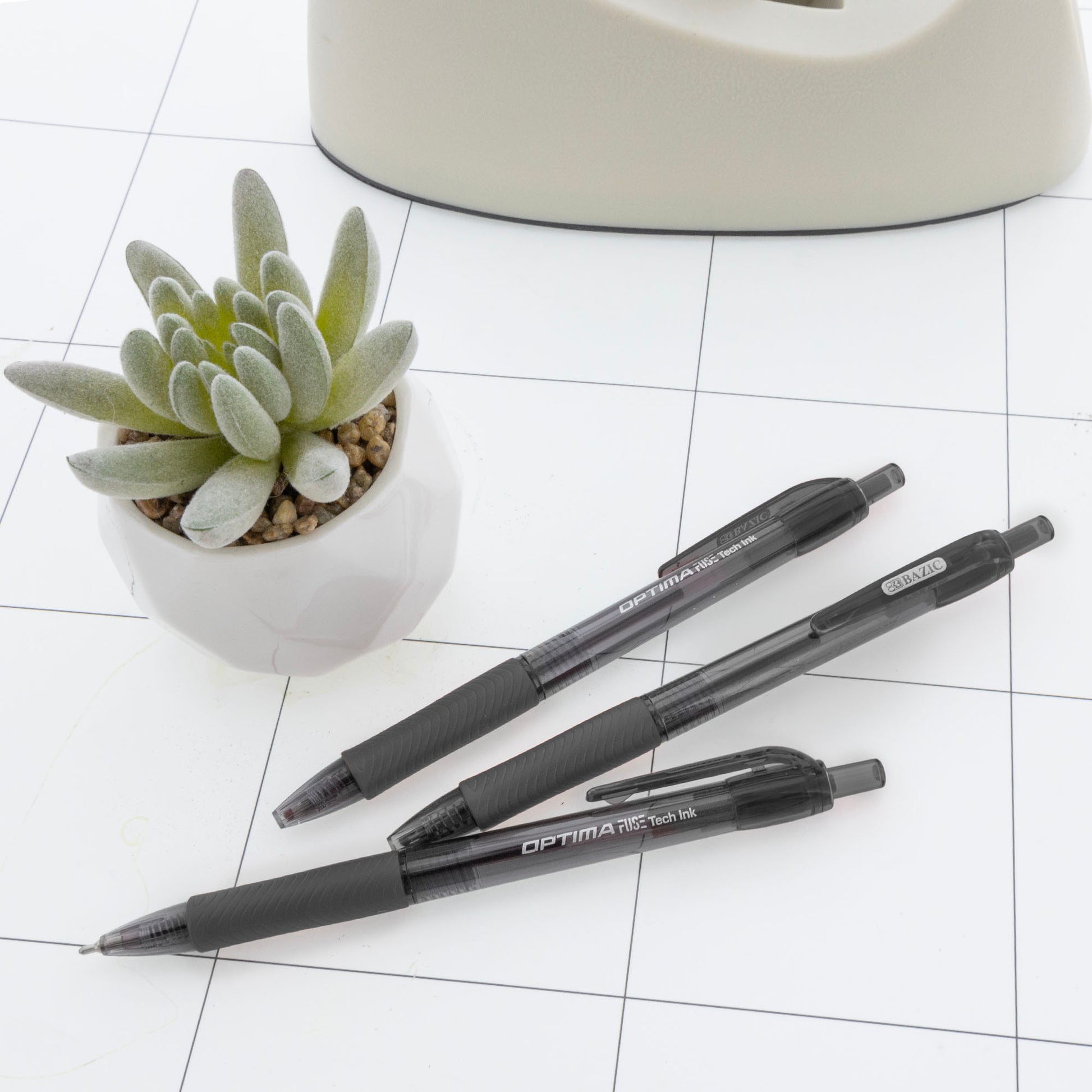 - OPTIMA BLACK RETRACTABLE FUSE TECH PENS. Each pack includes 3-Black Retractable Pens. The medium point spreads ink evenly as you write, offering dependable performance for everyday use.