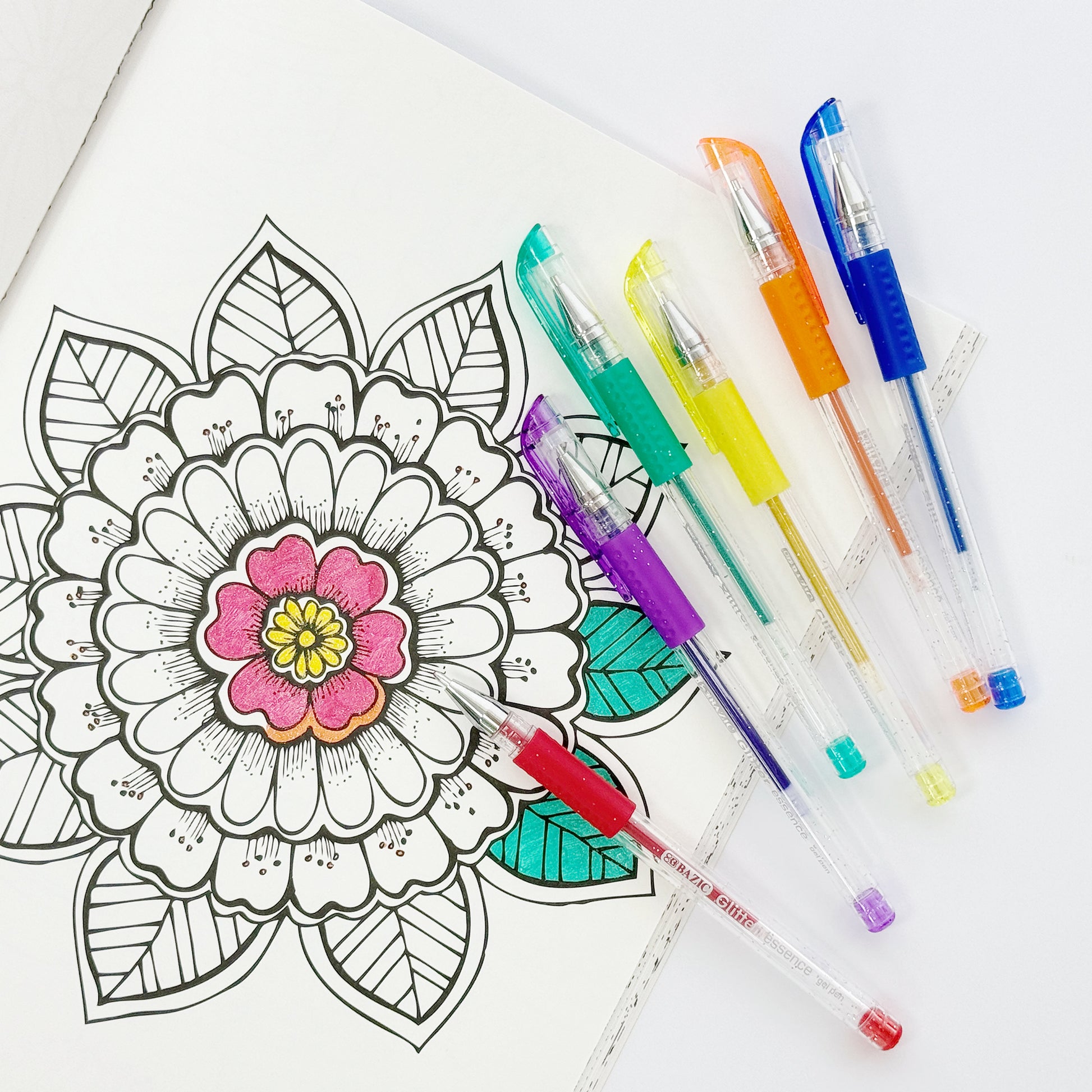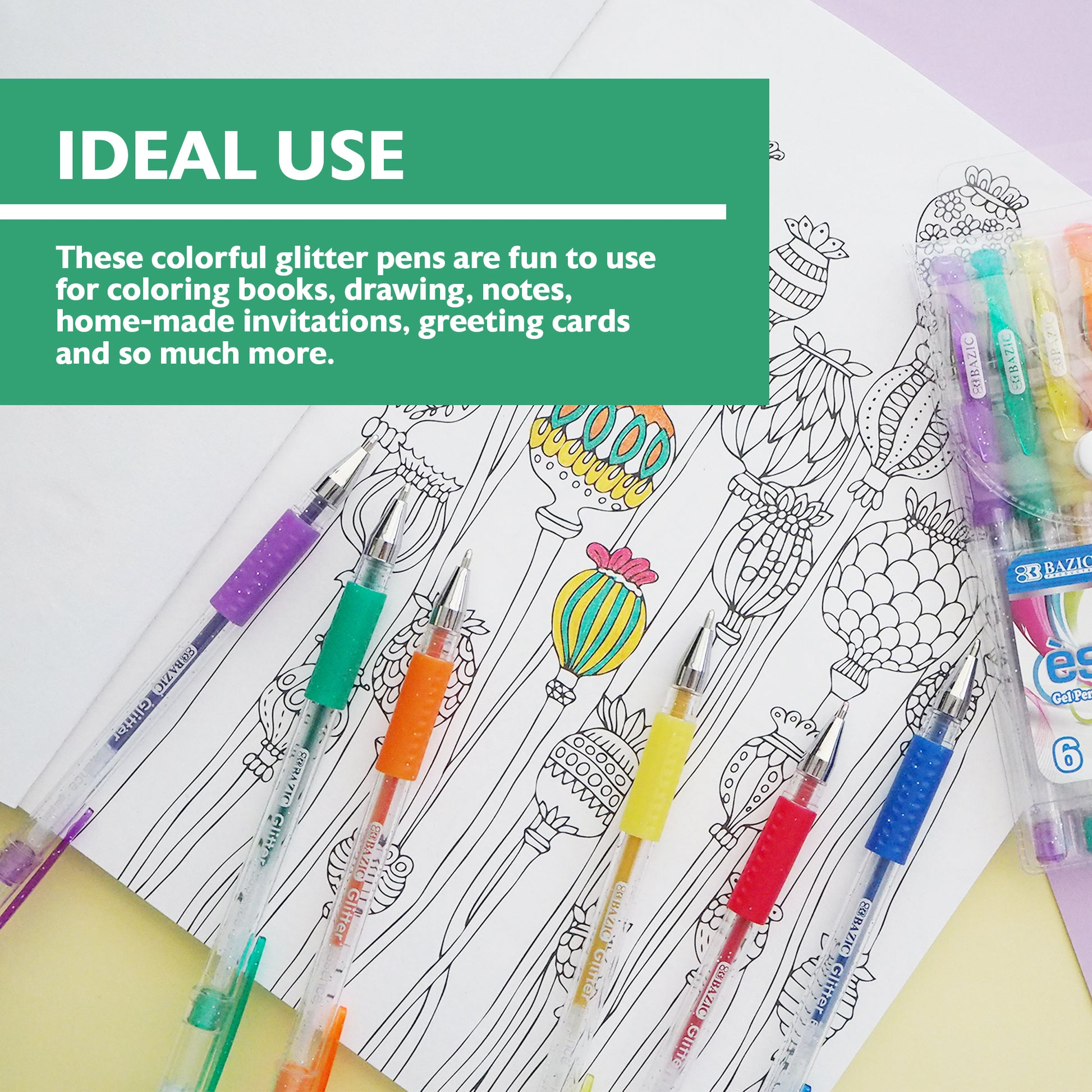 - IDEAL USE. These colorful glitter pens are fun to use for coloring books, drawing, notes, home-made invitations, greeting cards and so much more. Great gift idea for kids and adults who love to color!