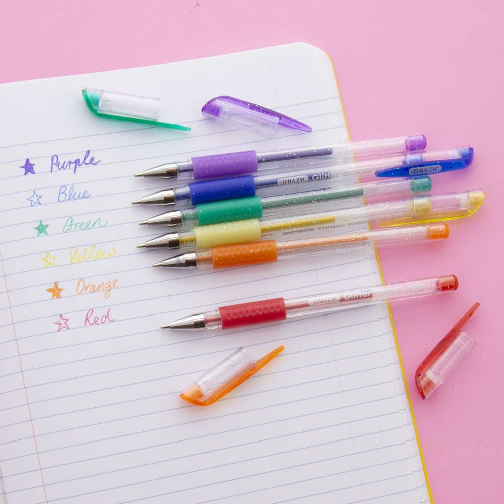 6 Glitter Color Essence Gel Pen w/ Cushion Grip