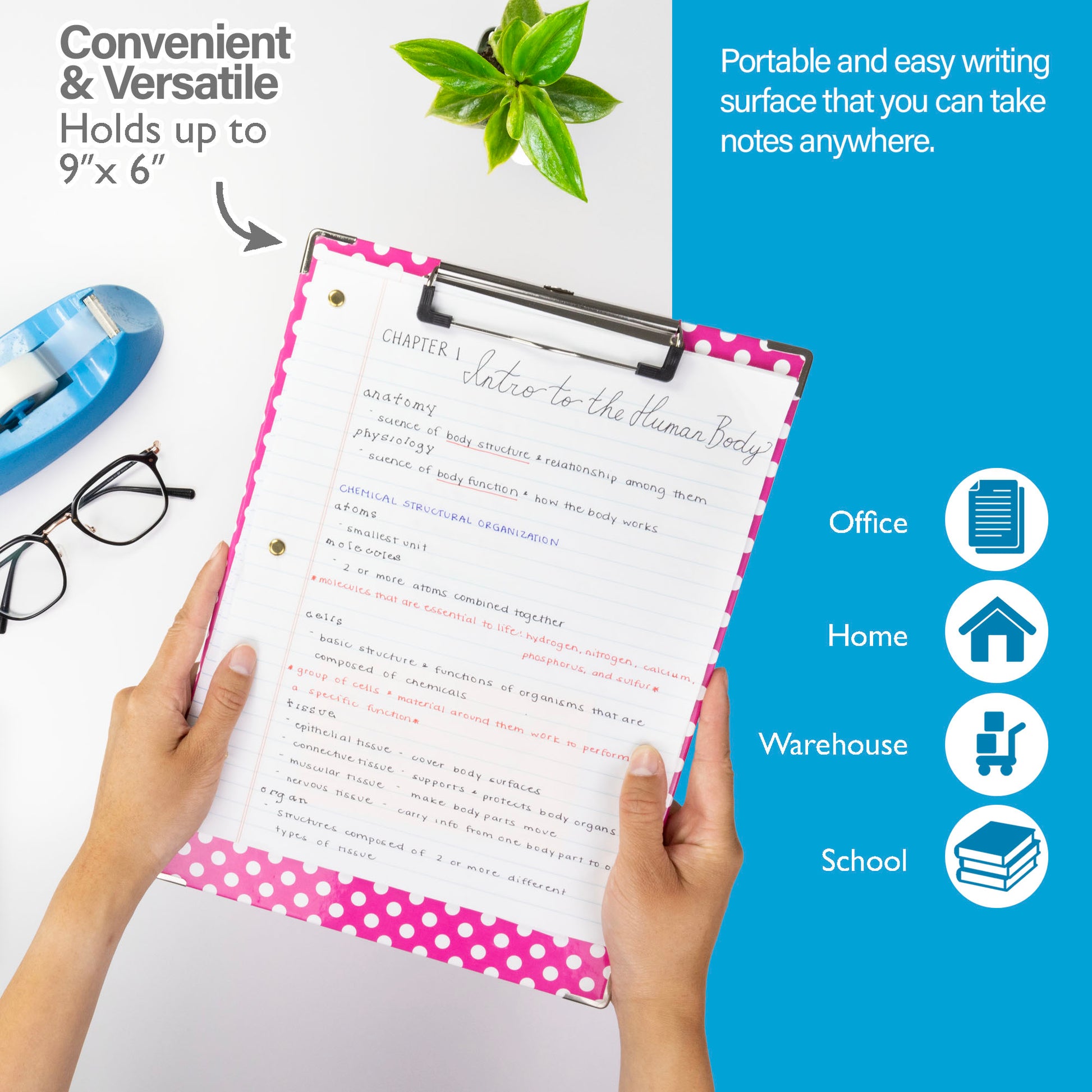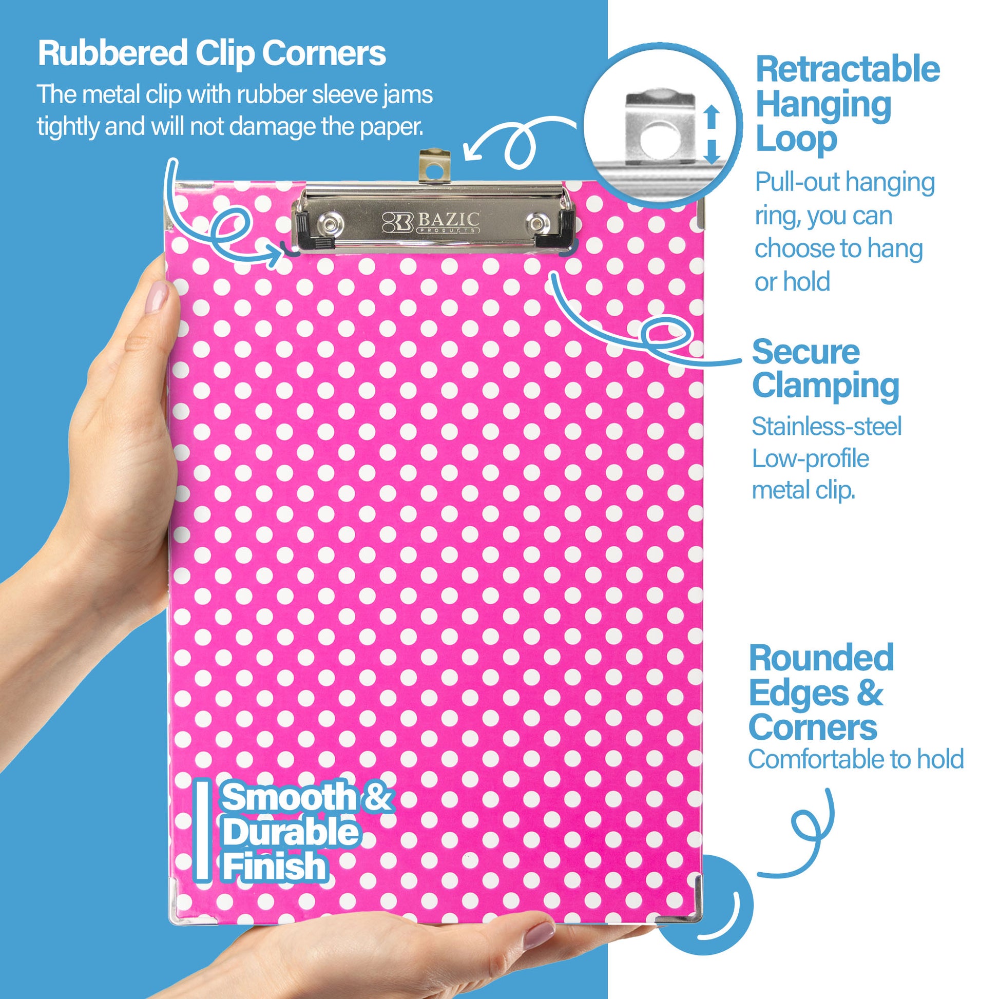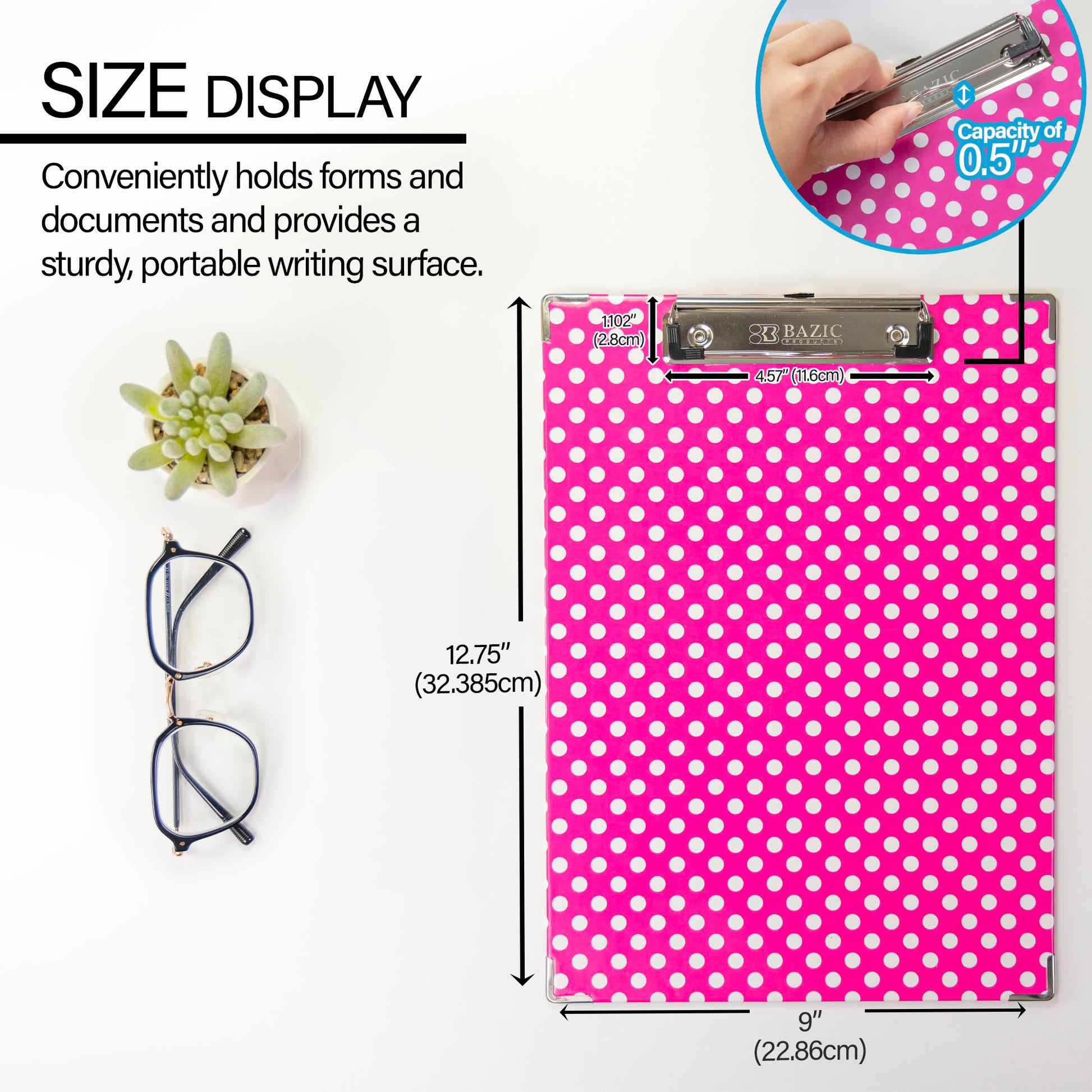 Standard Size Confetti Polka Dot Paperboard Clipboard w/ Low Profile Clip