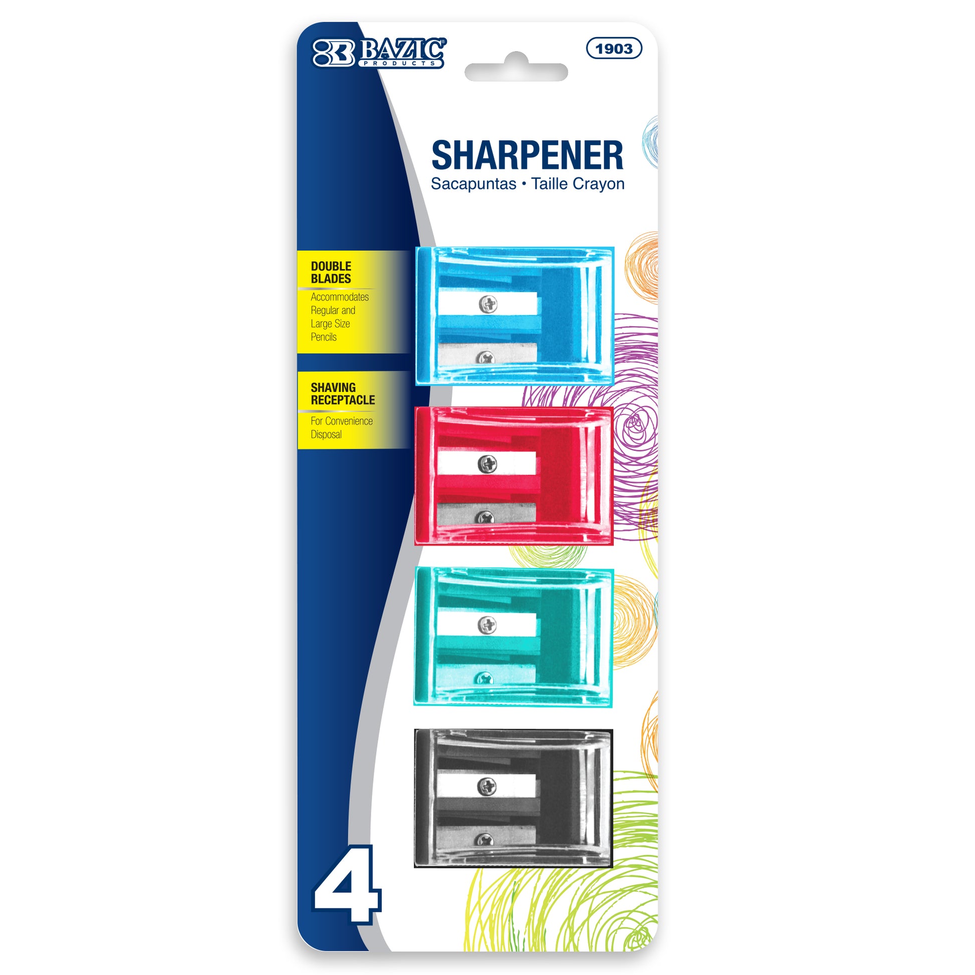 - 2 HOLE SHARPENING. Measure 1.6" X 1.2". Double blades sharpener accommodates Regular/Oversized/Jumbo/Colored pencils. Available in 4 colors.