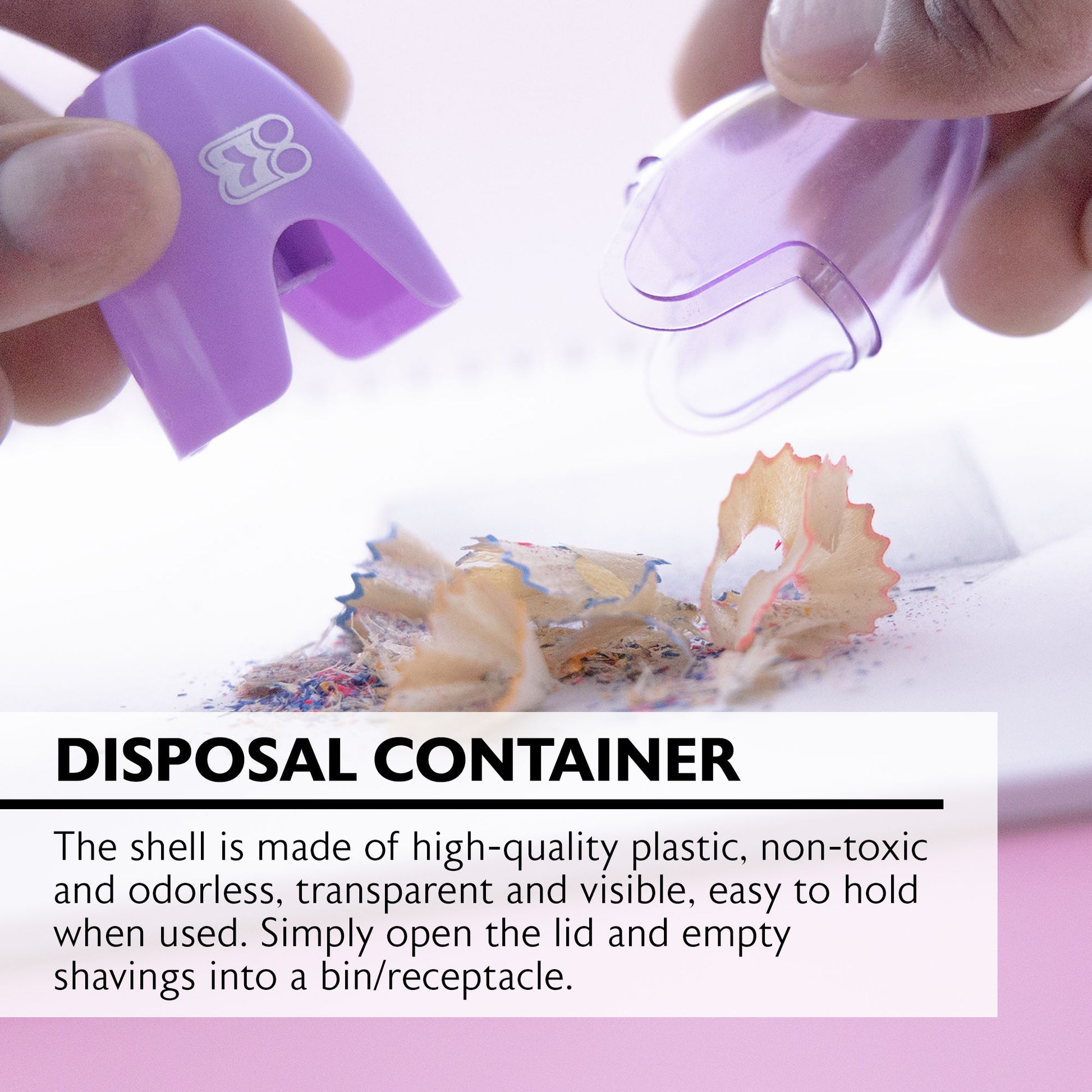 - SHAVING RECEPTACLE. The shell is made of high-quality plastic, non-toxic and odorless, transparent and visible, easy to hold when used. Simply open the lid to empty the shaving receptacle.