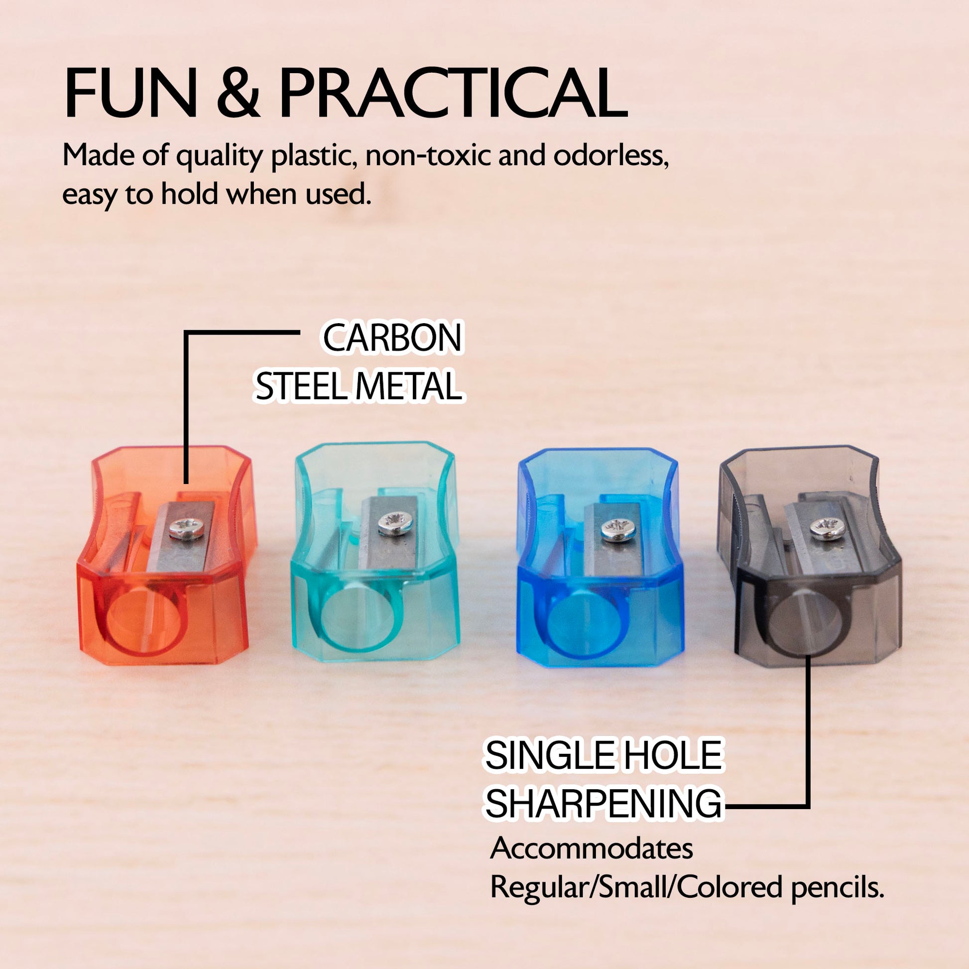 - FUN & PRACTICAL. The sharpener is made of premium metal blade, non-toxic and odorless, easy to hold when used. Great for teacher, students, teens, artist, professional.