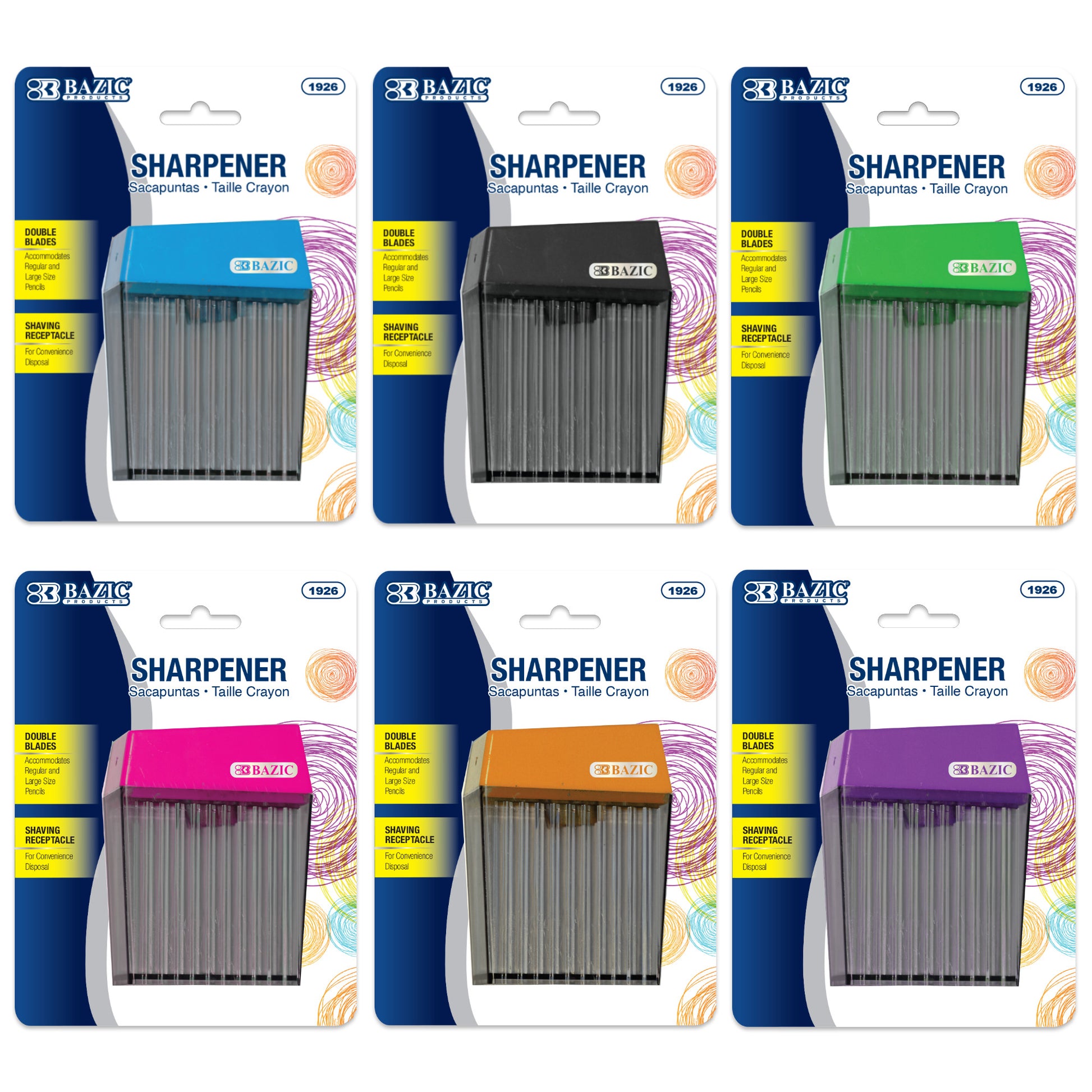 - 2 HOLE SHARPENING. Measure 2.75" X 0.8". Double blades sharpener accommodates Regular/Oversized/Jumbo/Colored pencils. Available color: blue, green, black, pink or more.