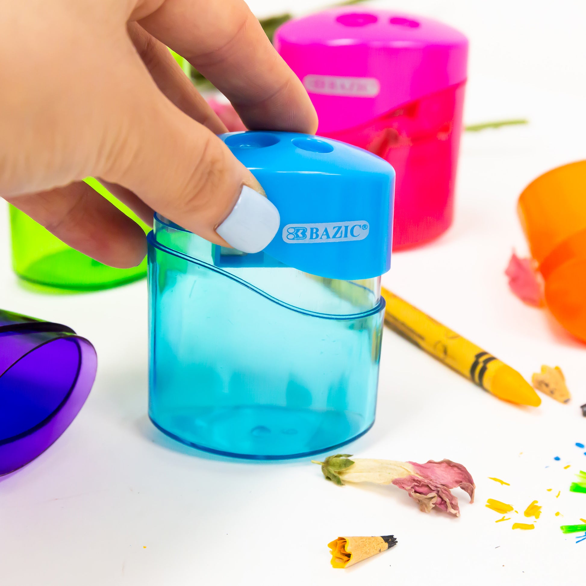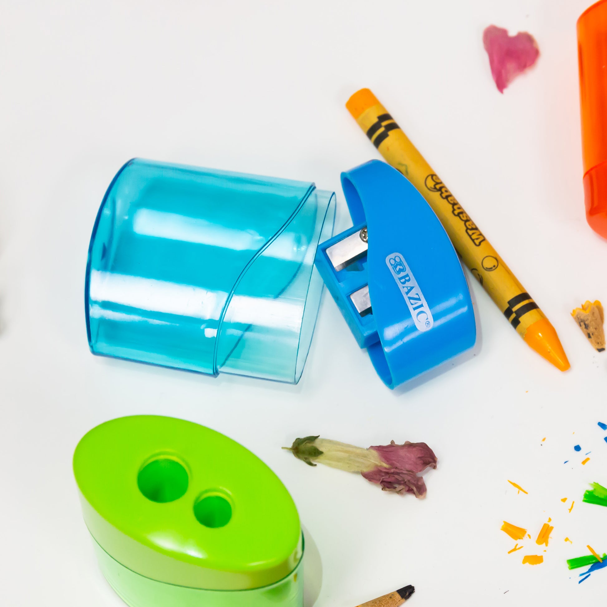 - 2 HOLE SHARPENING. Measure 2.5" X 2". Double blades sharpener accommodates Regular/Oversized/Jumbo/Colored pencils. Available color: blue, green, black, pink or more.