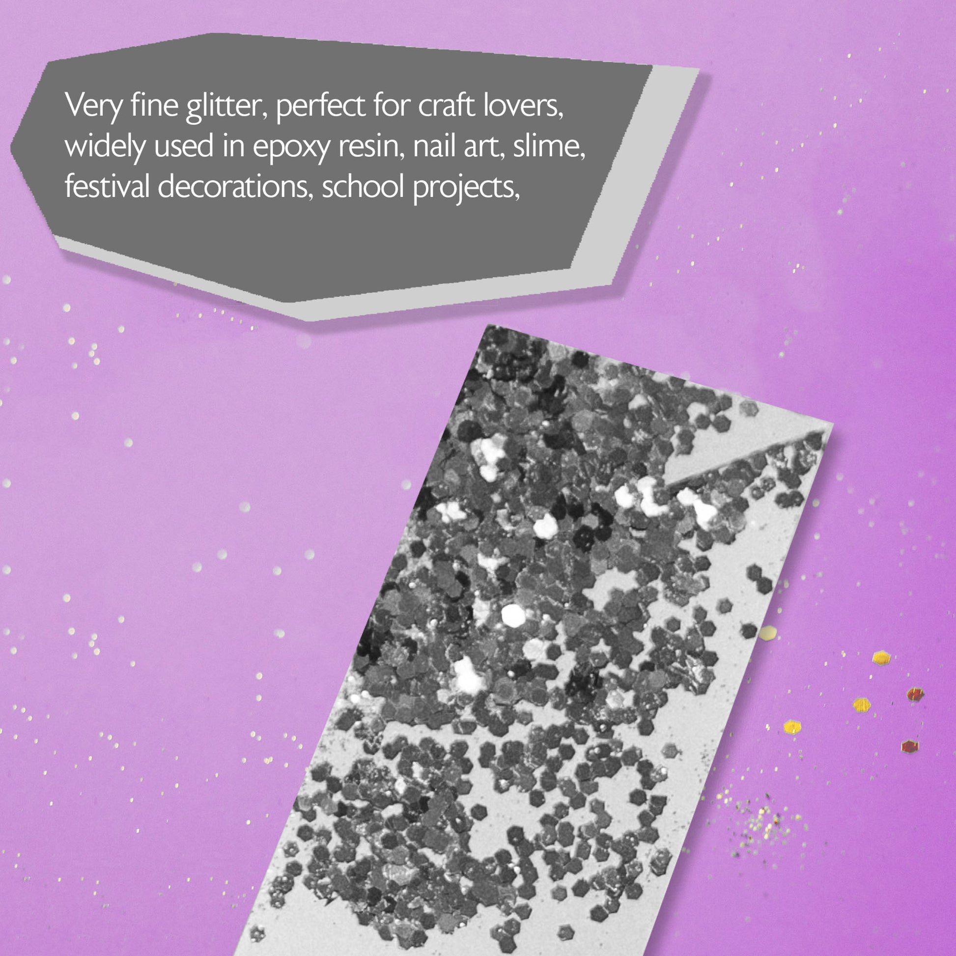 - WIDE APPLICATION. Very fine glitter, perfect for craft lovers, widely used in epoxy resin, nail art, slime, festival decorations, school projects, Halloween decoration, anything you want!