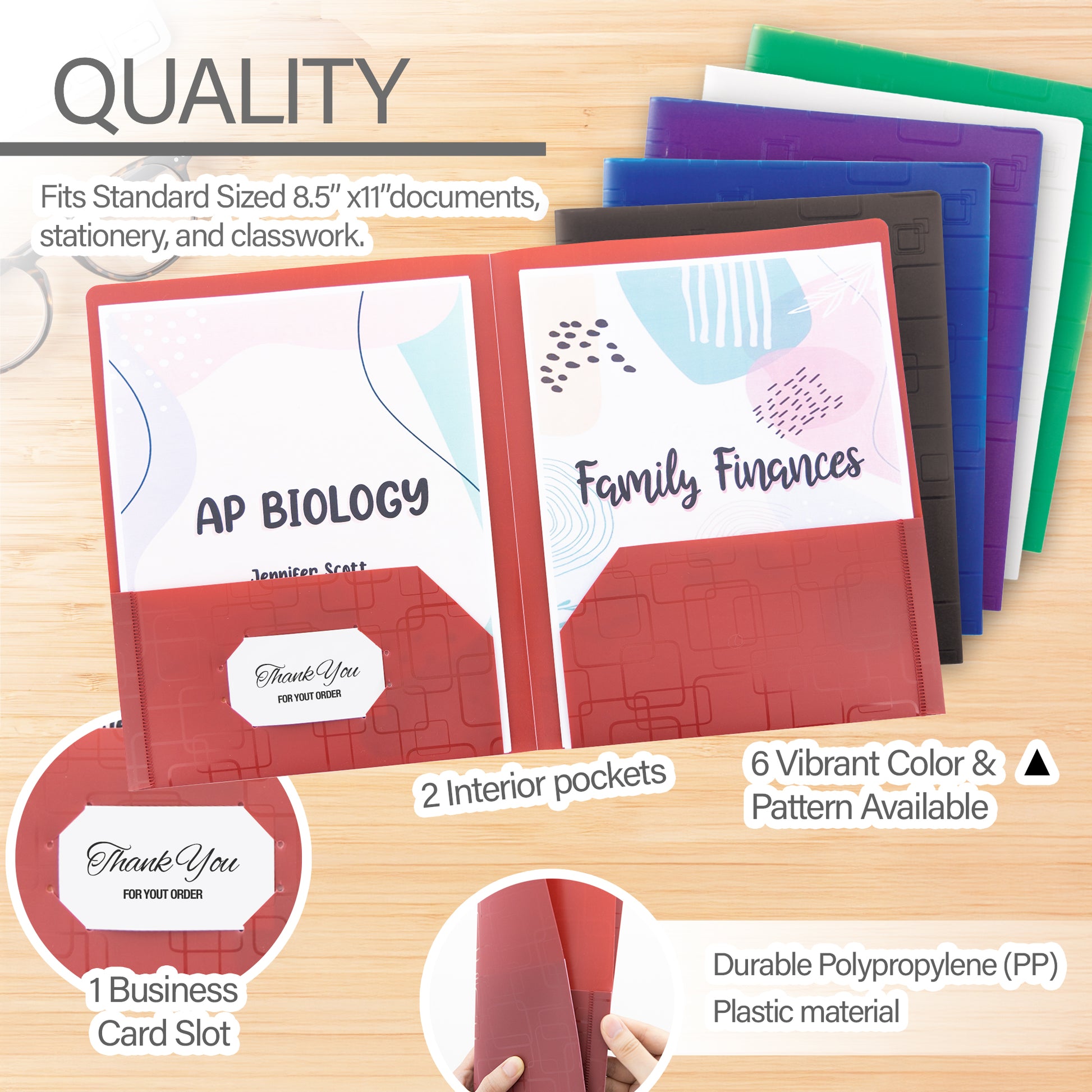 - DURABLE POLY FOLDER. Durable Folders Made from high quality Polypropylene (PP) Plastic material. Reinforced border to increase the usability, durability, and life-span of the plastic folder.