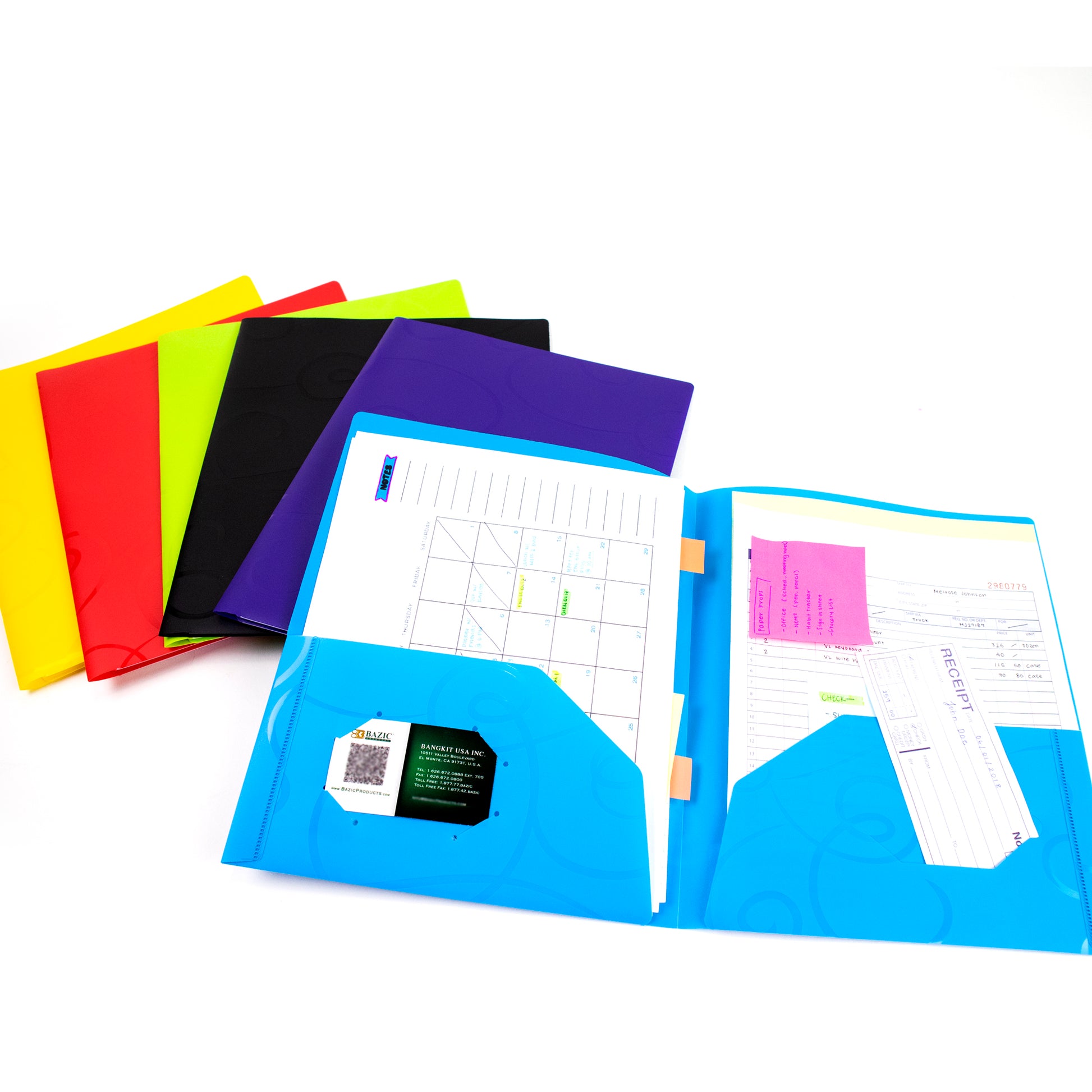 - FILE ORGANIZER. 2 pocket poly portfolios come in assorted colors and designs An extremely useful product for organizing or arranging papers, files or other similar items.