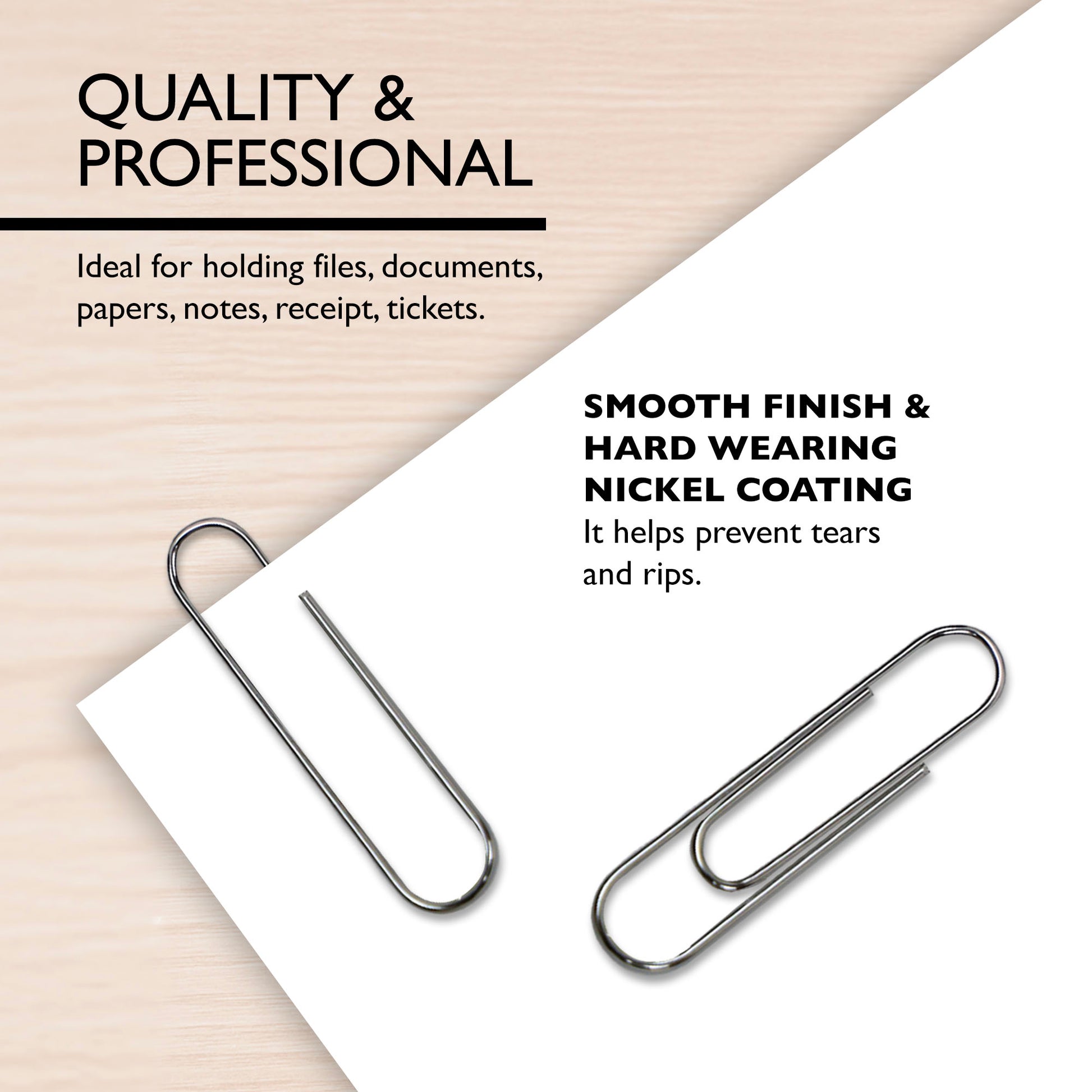 - PROFESSIONAL. Classic silver color helps you maintain professionalism at work. Perfect addition to your office supplies, paperclip can be used for stationery, fasteners, envelopes, and more!