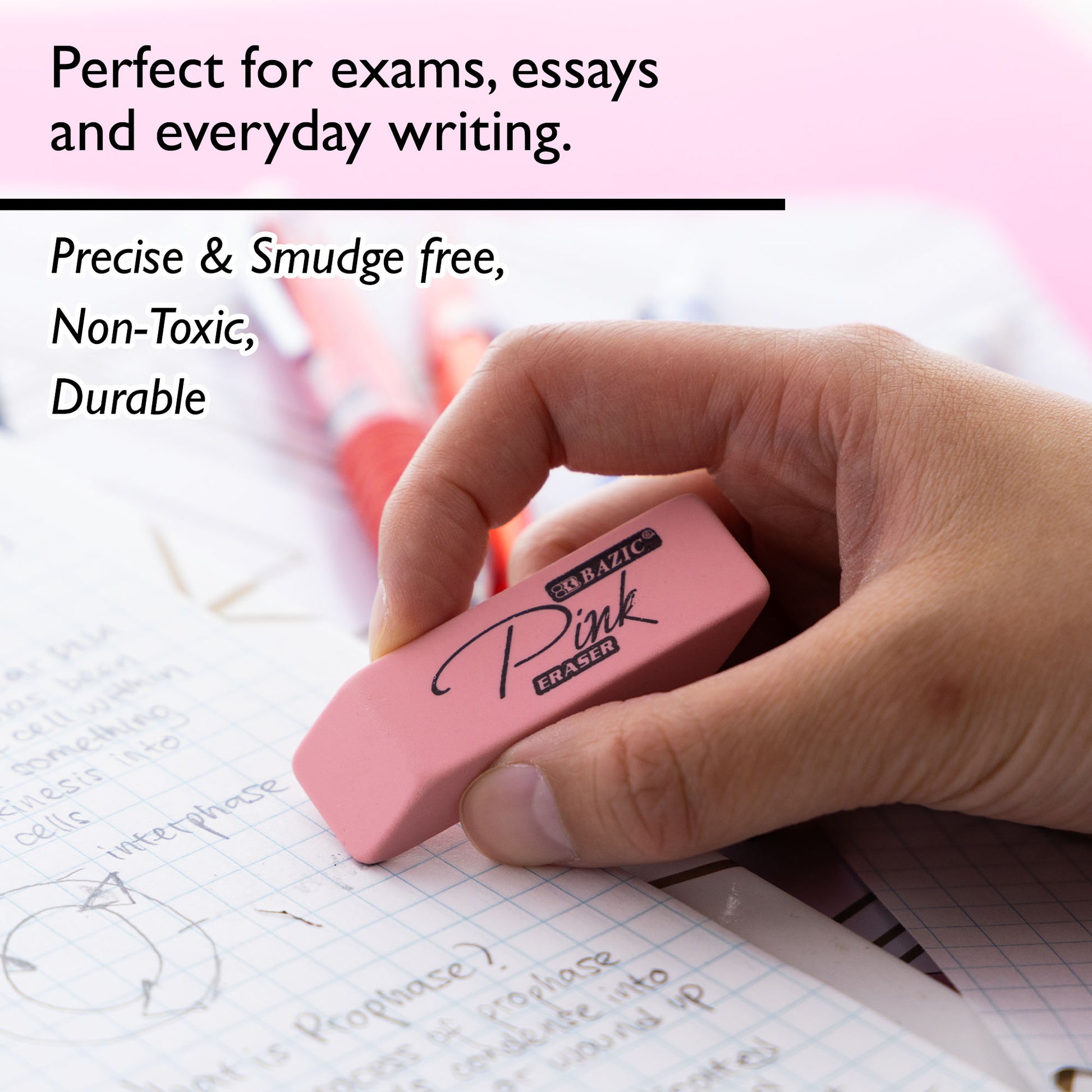 - MULTIUSE. Use on most surfaces without smudging. It cleans easily without scratching, tearing, or damaging paper. Perfect for exams, essays, office documents, homework, everyday writing