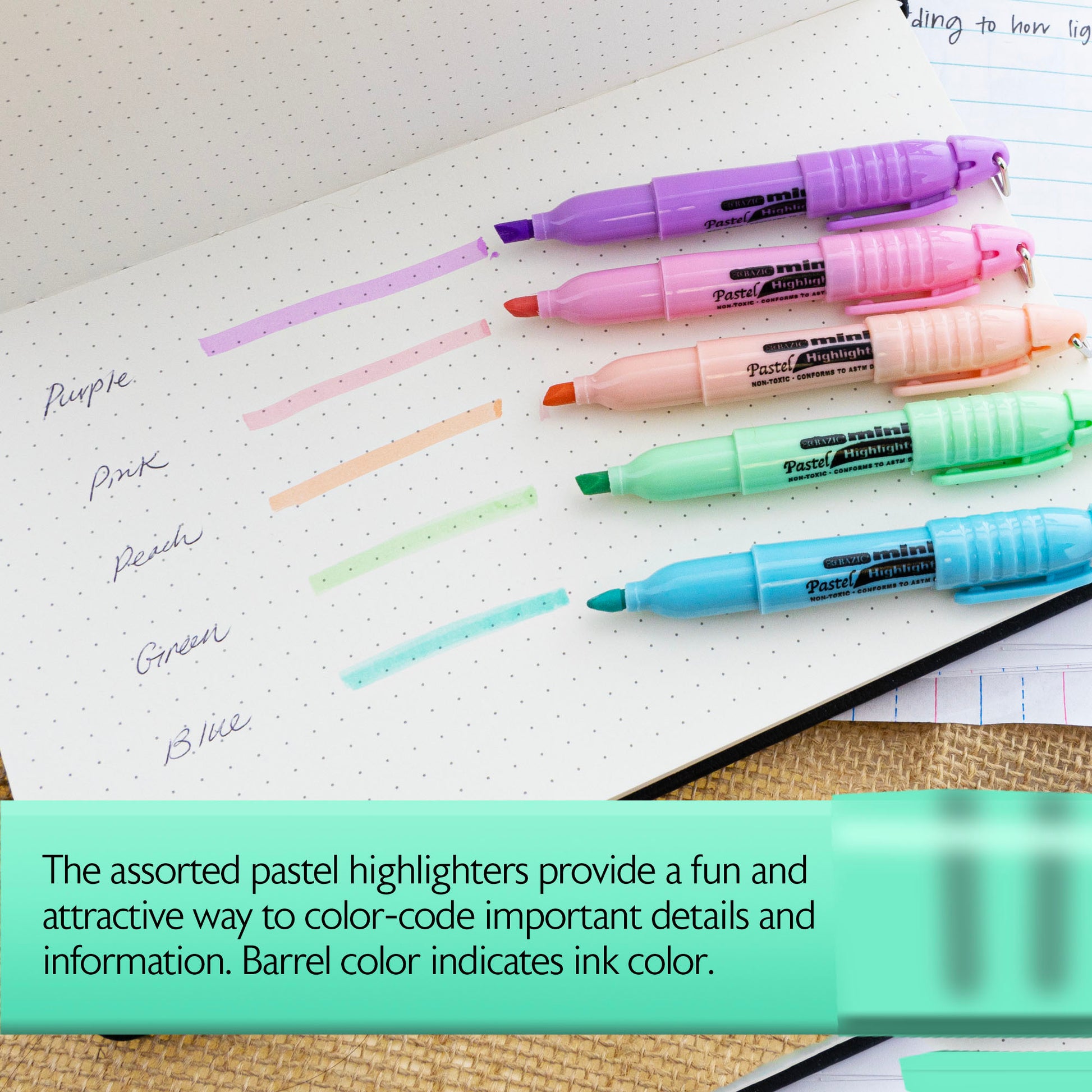 - PASTEL COLOR. The assorted pastel highlighters provide a fun and attractive way to color-code important details and information. Barrel color indicates ink color.