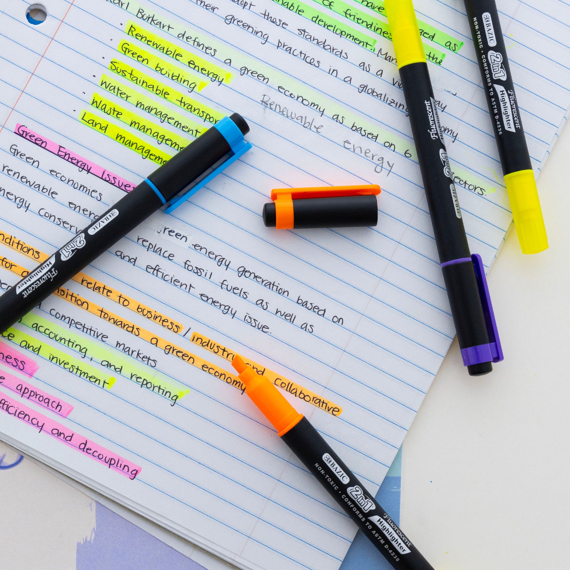 Double Tip Fluorescent Highlighters (5/Pack)