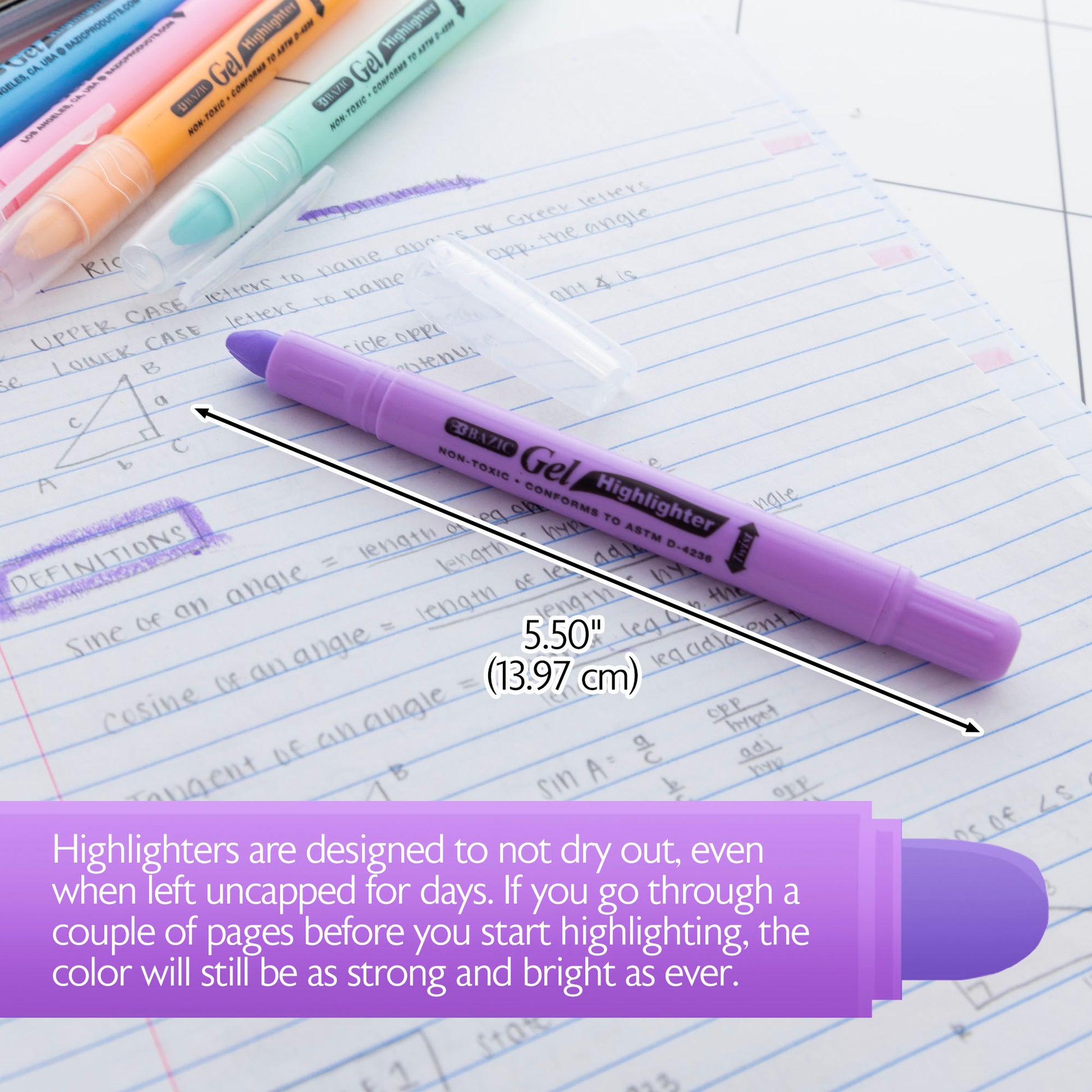 - WON'T DRY. Highlighters are designed to not dry out, even when left uncapped for days. If you go through a couple of pages before you start highlighting, the color will still be as strong and bright as ever.