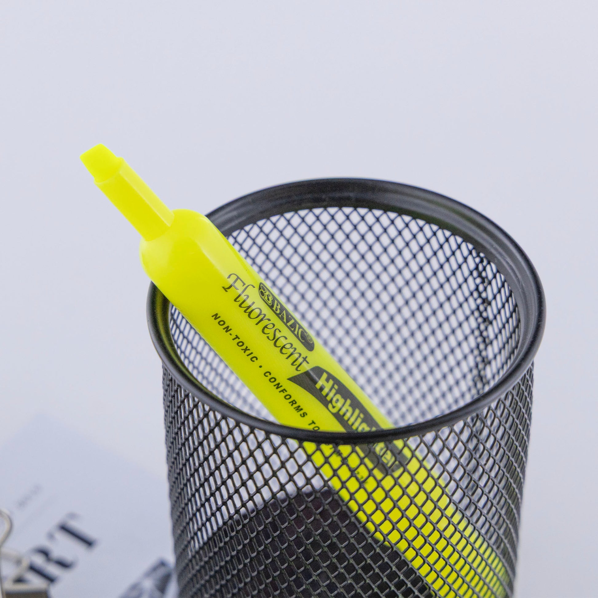 - DESIGN. The desk-style highlighter provides a thick barrel and wide chisel tip that's perfect for highlighting larger fonts and blocks of text. Non-rolling cap adds convenience.