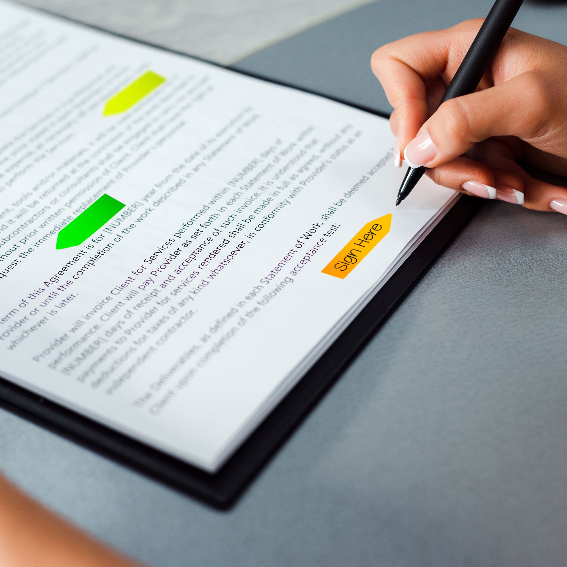- PREMIUM PET MATERIAL. Smooth surface to with it with pen, pencil, or marker. Waterproof, non-toxic andodorless. Easy to apply and peel. Keep track of documents with colorful reminders.