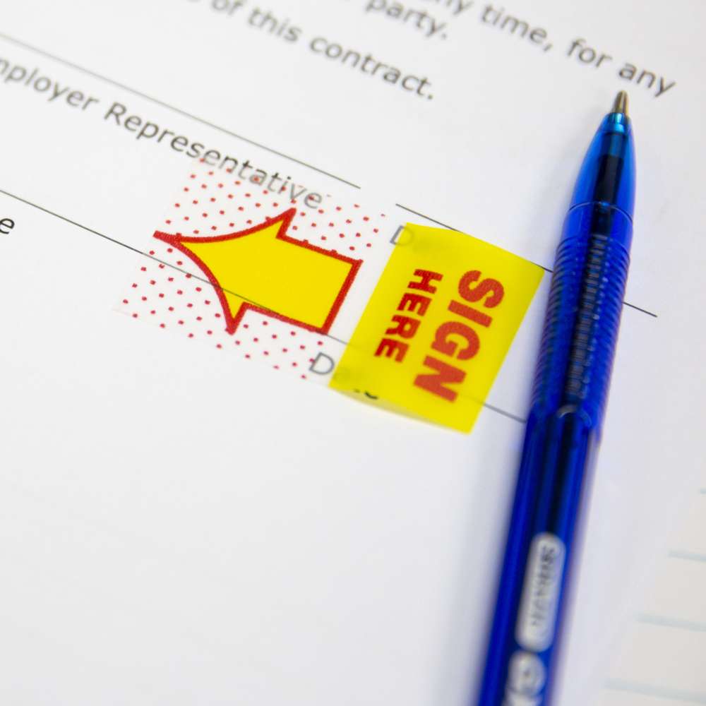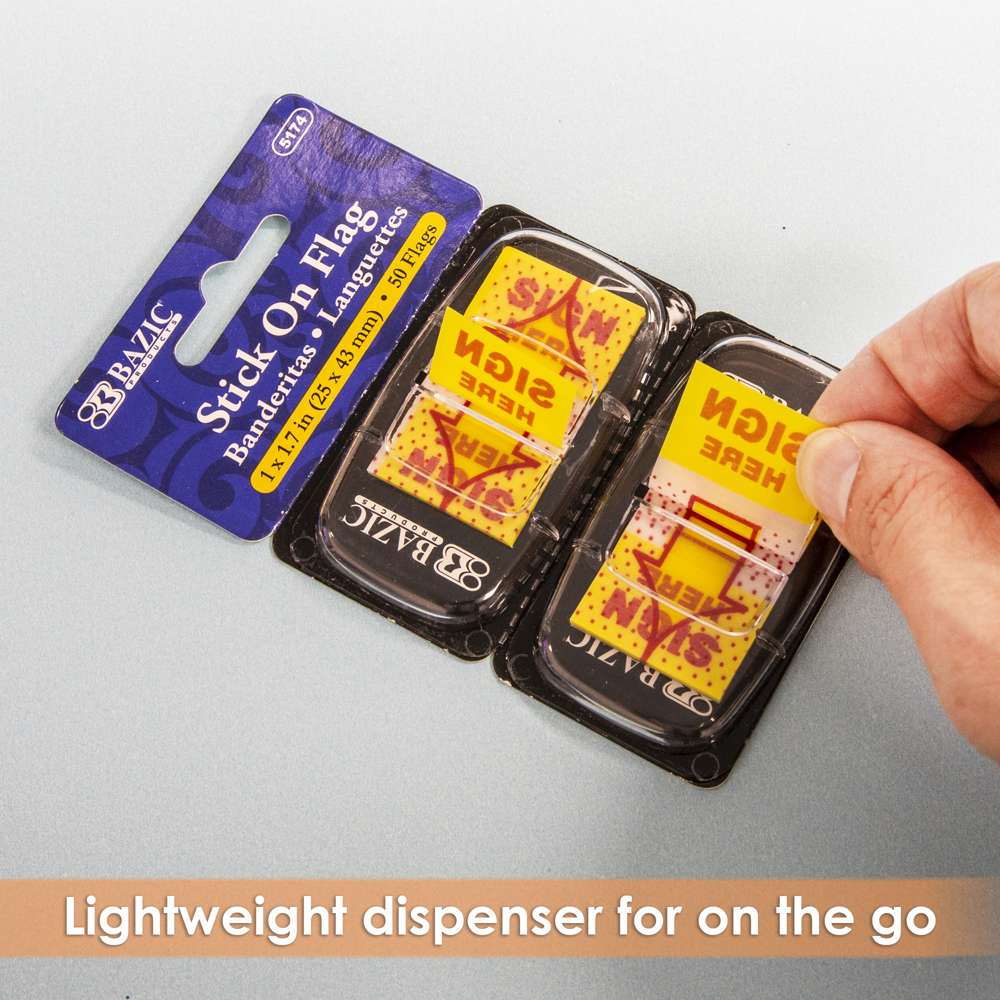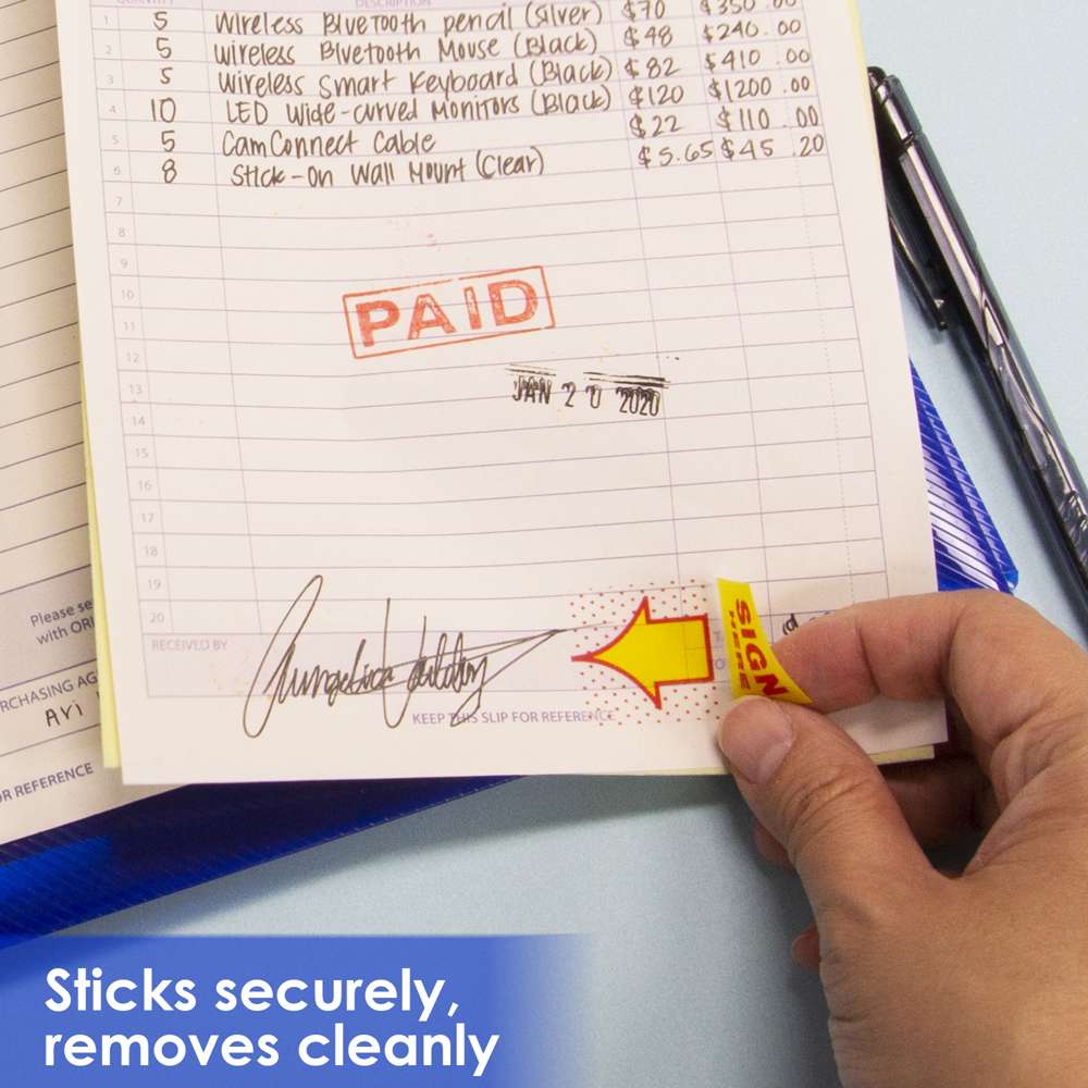 25 Ct. 1" x 1.7" Yellow Color Printed Sign Here Flags w/ Dispenser (2/Pack)
