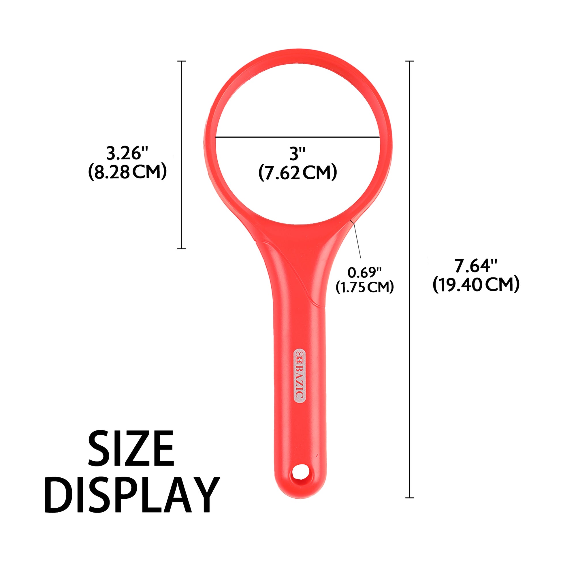 - ROUND MAGNIFIER. This magnifying glass provides 2x magnification, allowing users with low vision to read text, no matter the size. Magnifier comes with a 3" inch round sturdy frame.