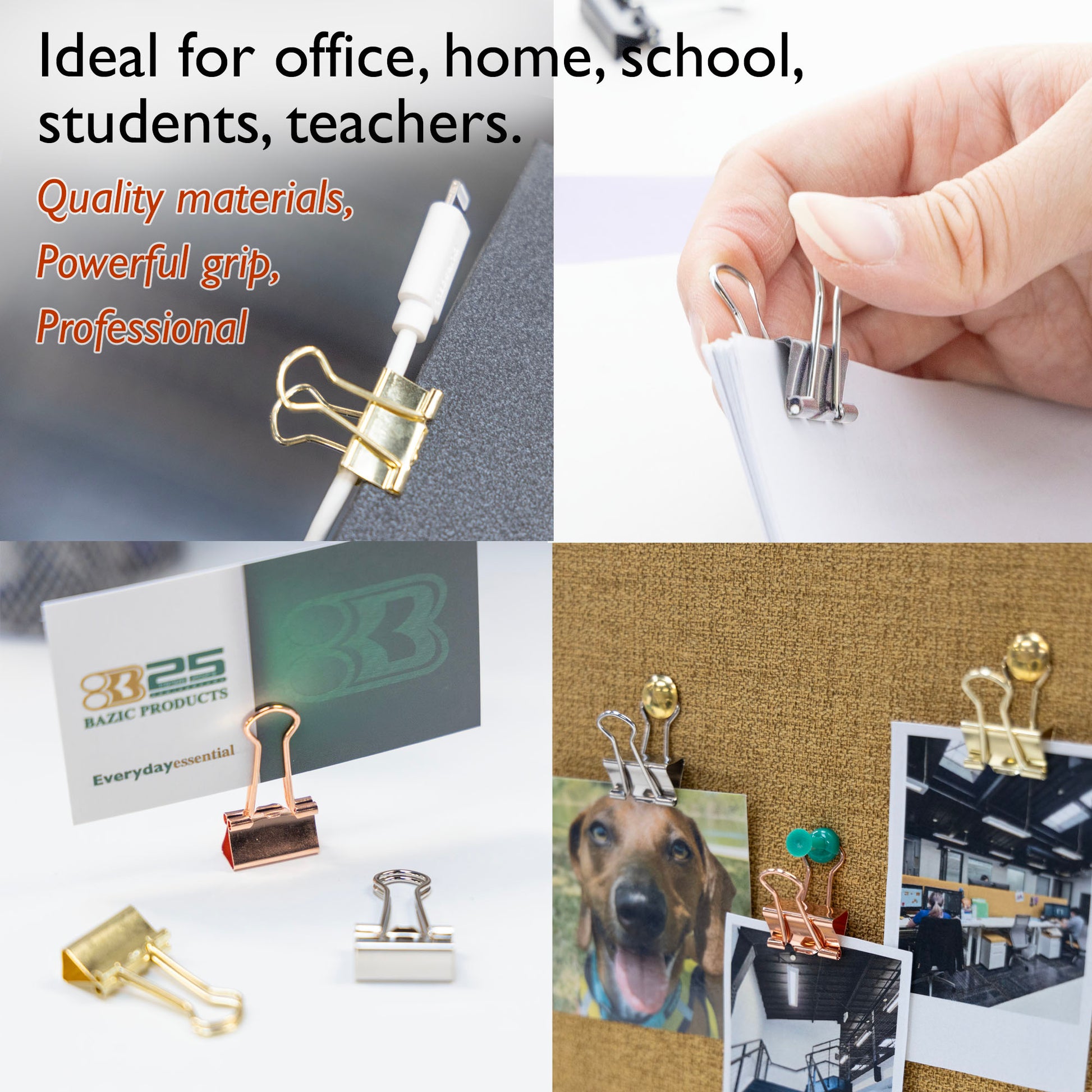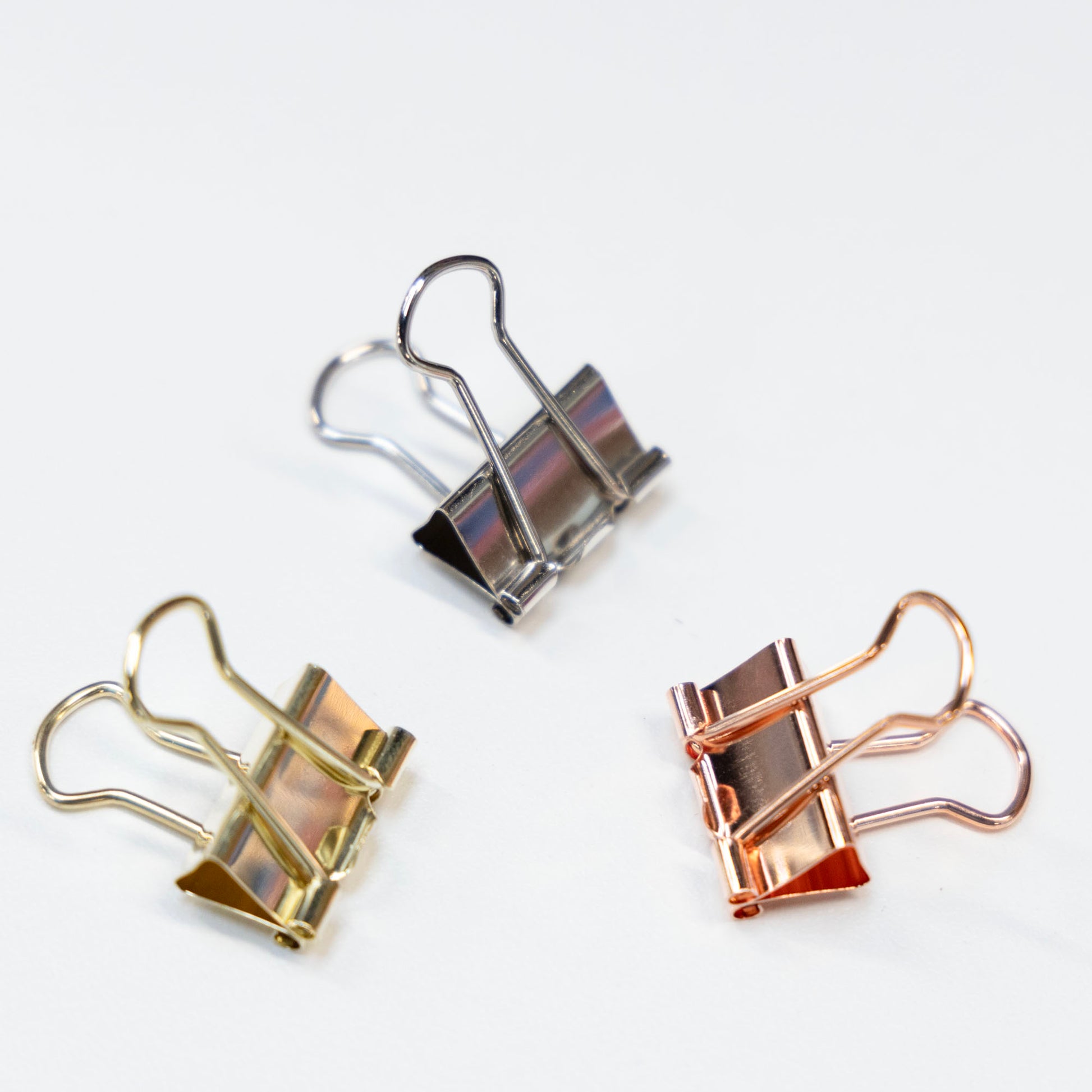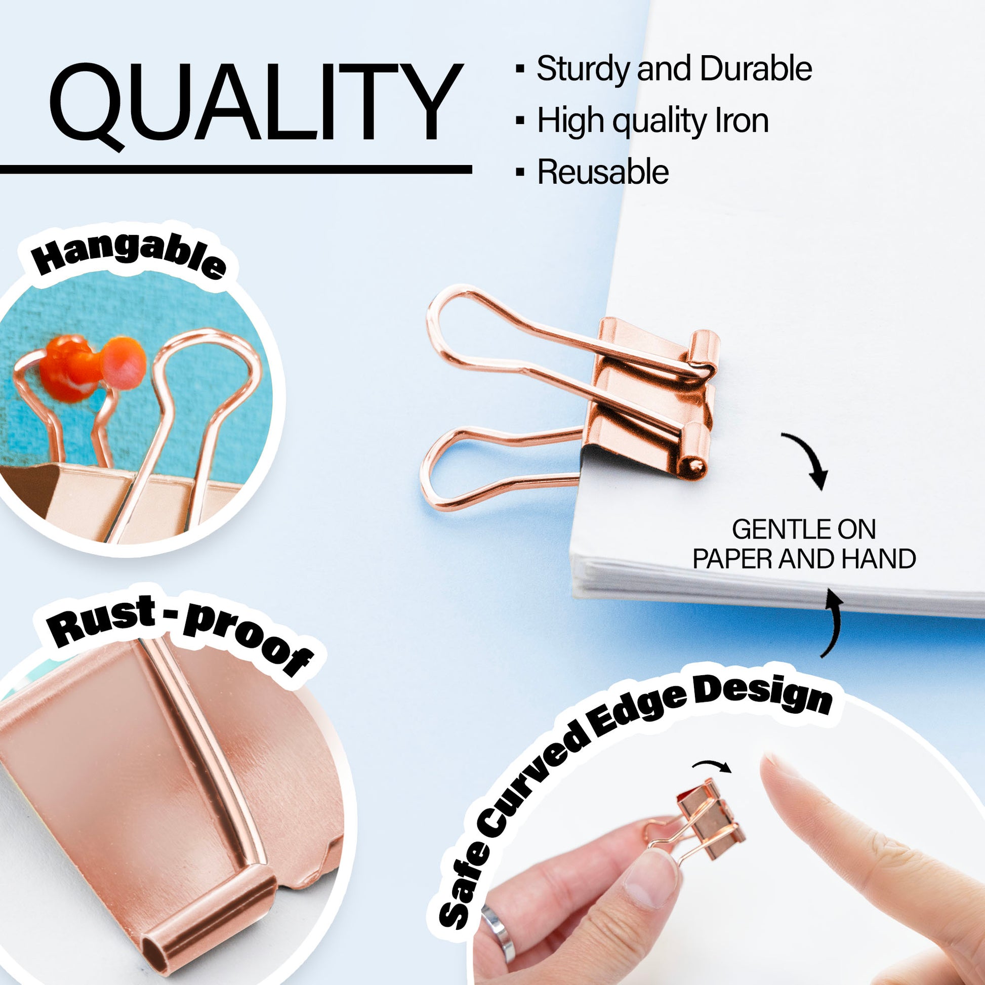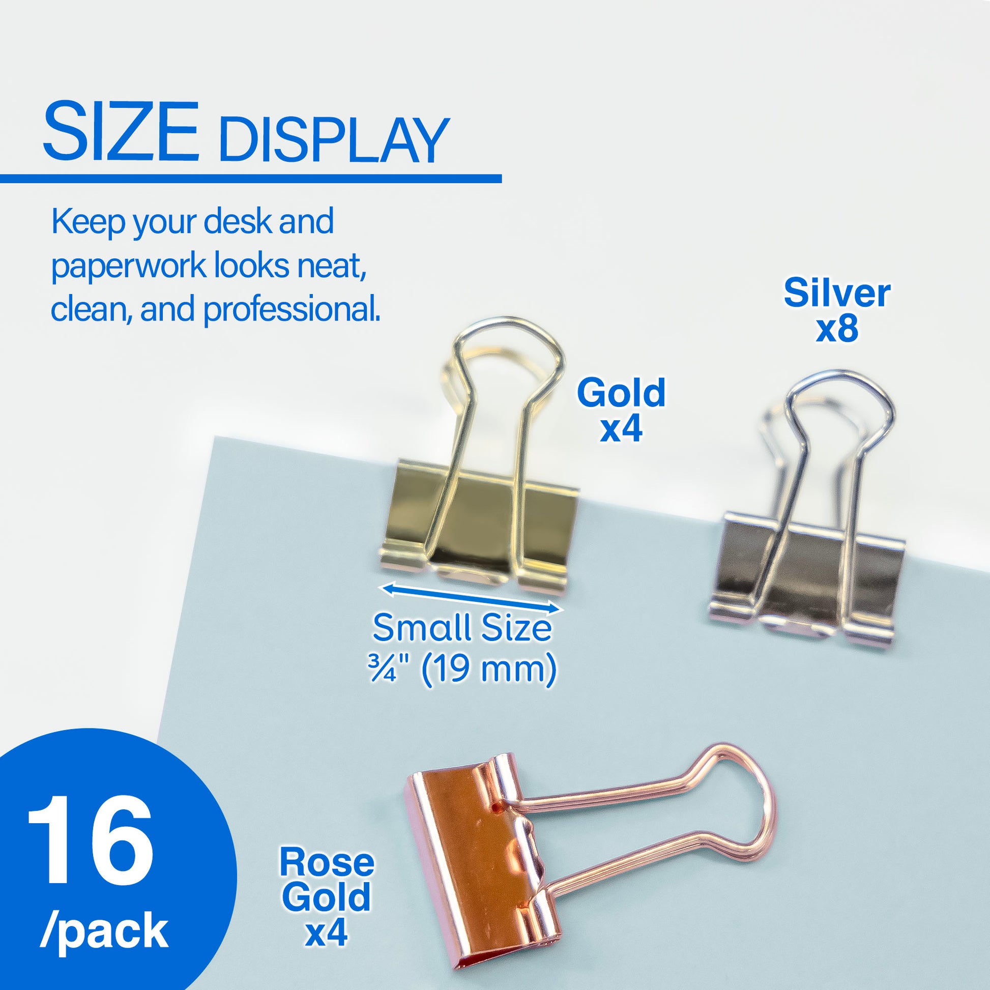 - MULTI-PURPOSE: Ideal for various tasks, these metallic mini binder clips securely hold your papers with a stylish touch for your organizational projects, whether at home, in the office, or at school