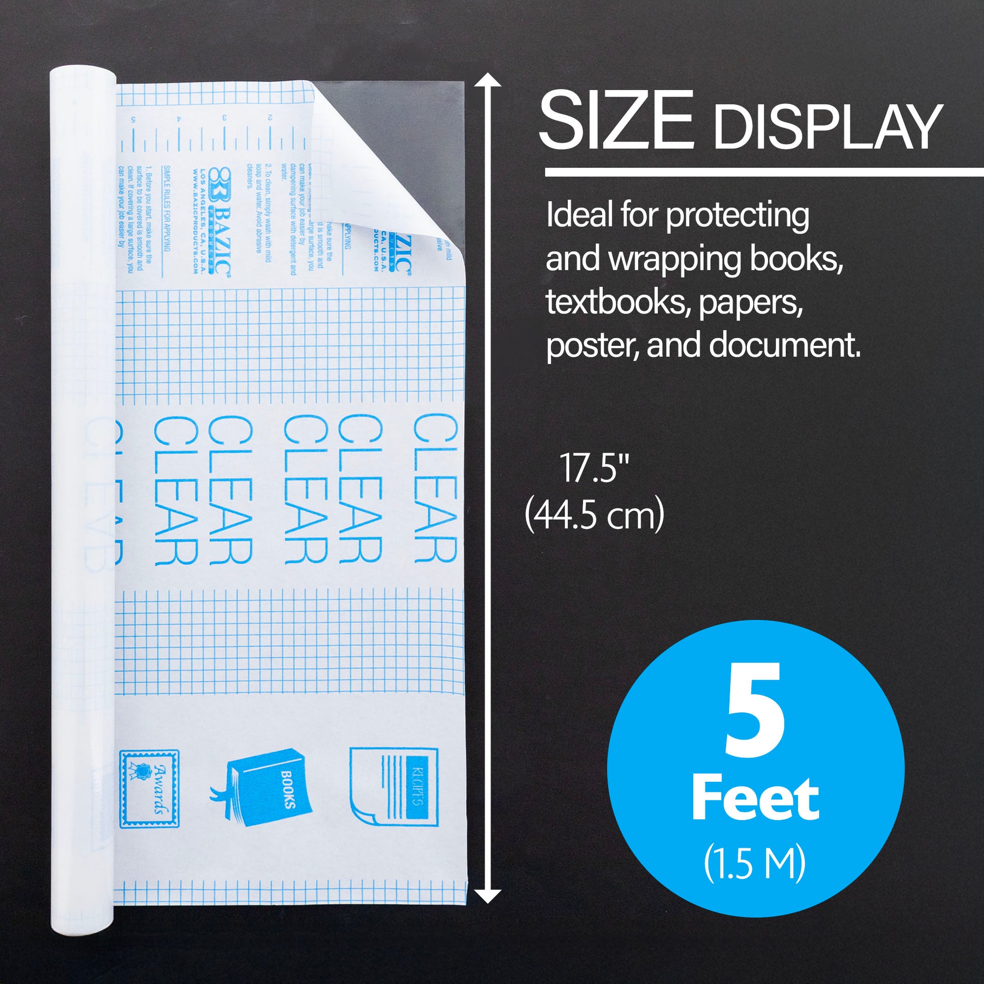 - SAFE TO USE. BPA Free. Sheet Measure: 17.5 x 60 Inch. Protective self-adhesive liner for books, textbooks, papers, poster, and document. Protects against spills, stains, wear and tear. Create a gloss finish surface.