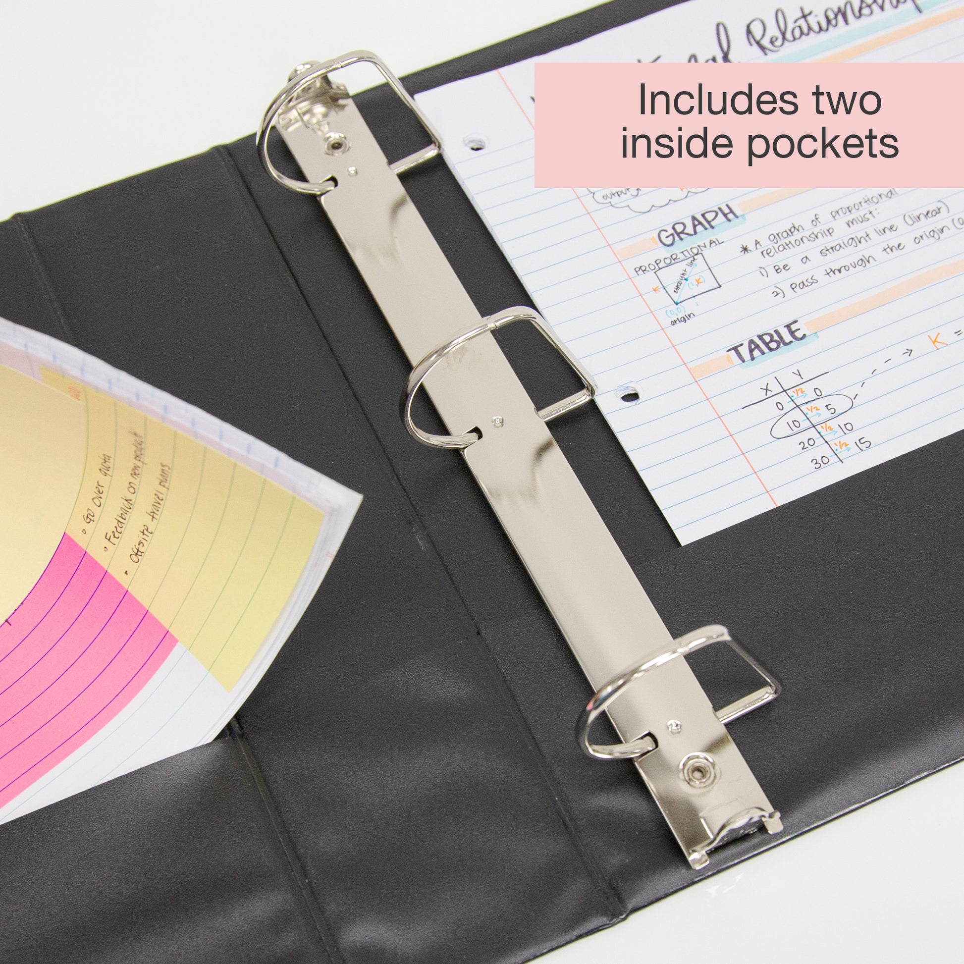 - GREAT DURABILITY. Designed and manufactured with enhanced durability featuring a tear-resistant cover with clear transparent view covers to insert or customize your binder on the front, back and spine. Two interior pockets for extra storage.