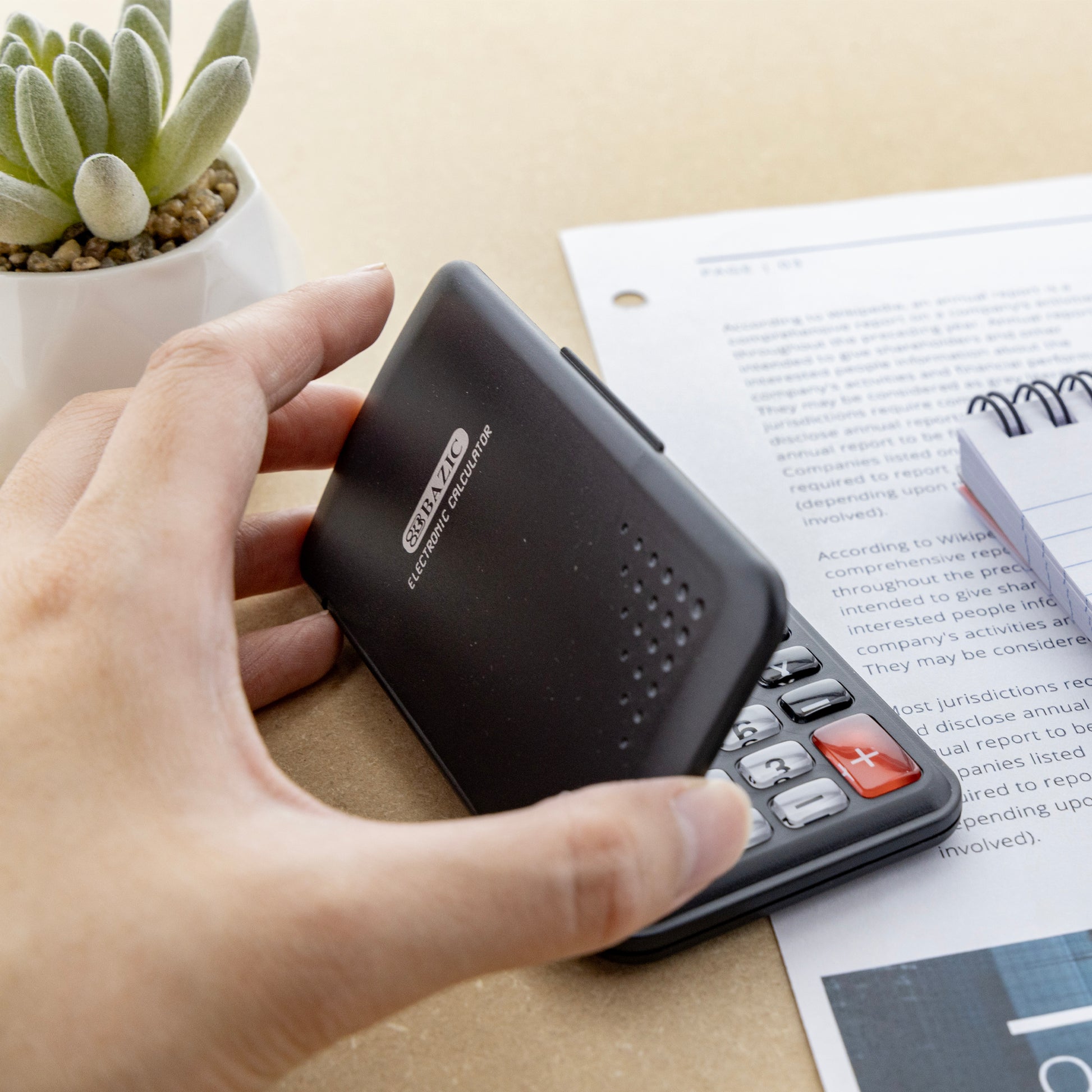 - MINISize. Pocket calculators, smallSize is suitable for your business travel use. This easy to use calculator takes up little space on your desktop and fits into your briefcase or desk drawer.