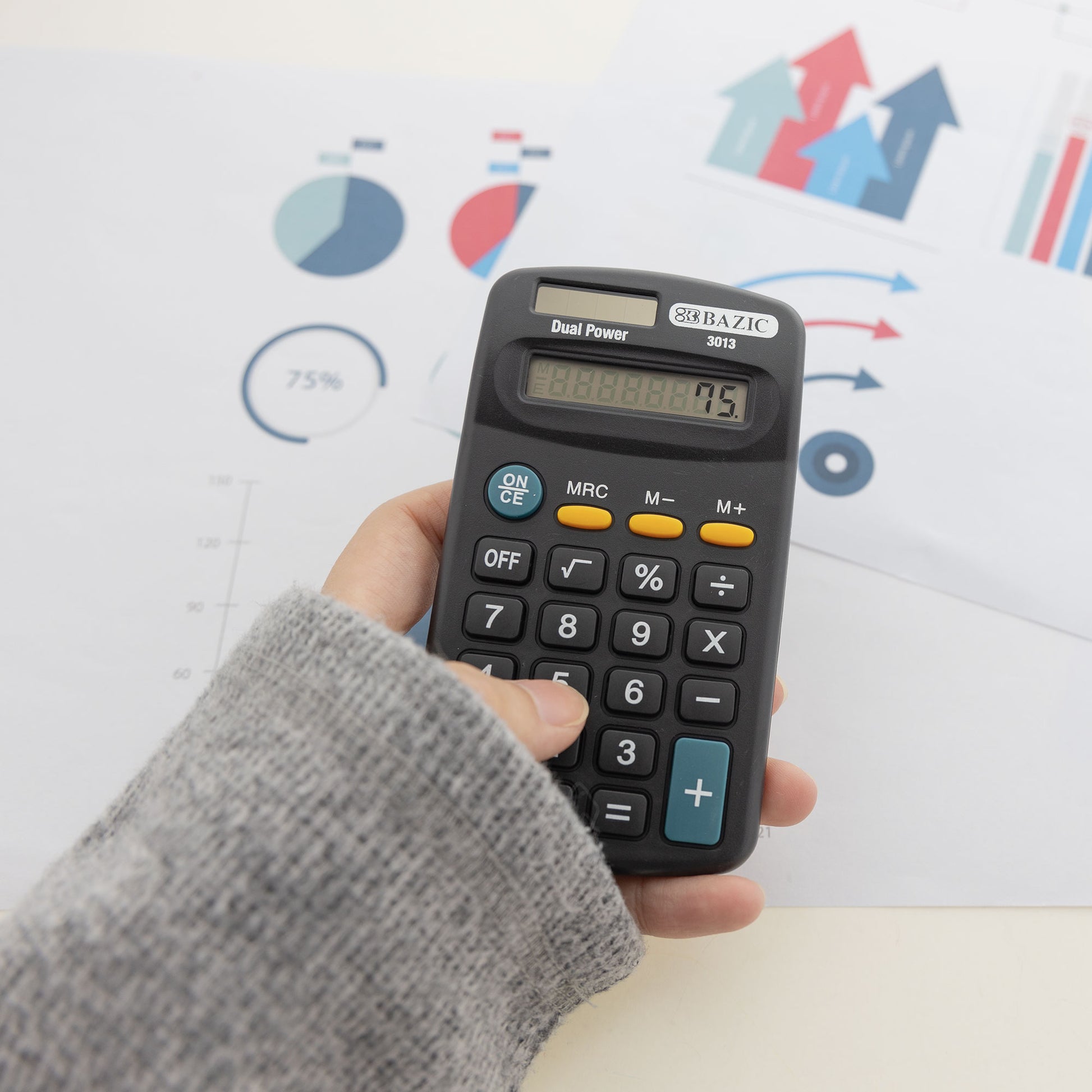 - POCKET SIZE. With its compact and pocket-friendly design, this calculator saves space and is easily portable for carrying it in pockets or purses while on the go, at school, or in the office.